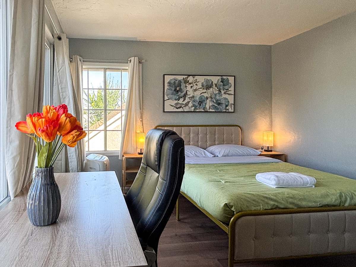 Need a convenient short-term rental near all the city highlights for your next stay in the San Fran Bay Area? Look no further! This executive suite has everything required for a comfortable hotel-like experience and is only minutes from restaurants, shopping, and the BART station! The stylish 1-BD, 1-BA space comfortably accommodates 2 guests and has fast Wi-Fi, a Smart TV, a dedicated workspace, a private courtyard, and a kitchenette that business and leisure travelers will appreciate.