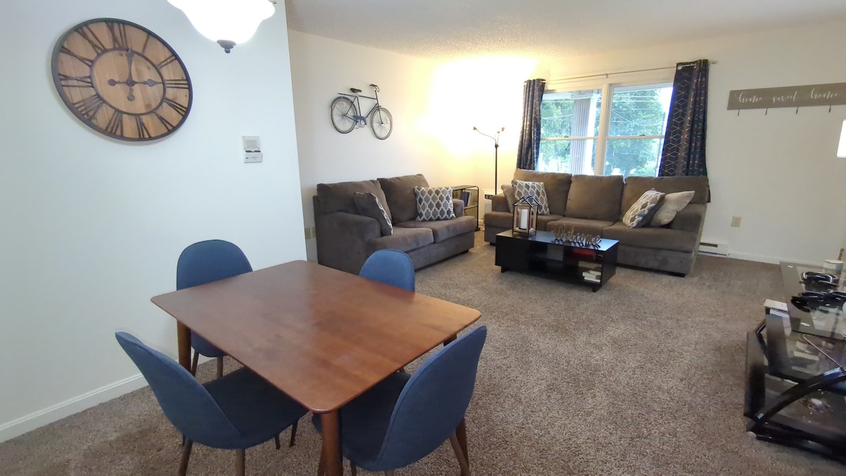 私人住宅內配備齊全的地下室公寓,設有獨立入口。您會找到過夜所需的一切,包括小廚房、浴室、辦公室和起居區域,以及一張配有平板電視和WiFi的雙人床。距離各類商店不到5英里。步行即可抵達Crosscutters棒球場和原始小聯盟棒球場。小聯盟世界系列賽球場開車15分鐘即可抵達。