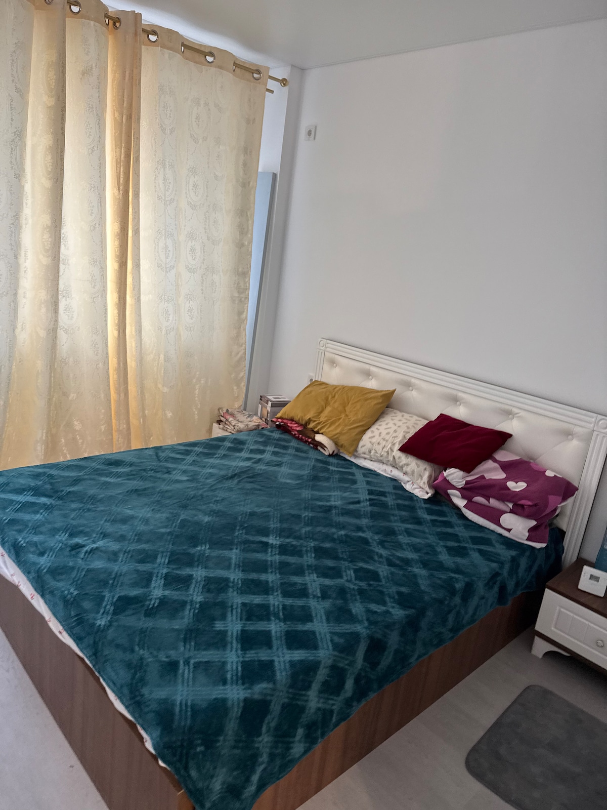 The apartment is in a quiet place. Has a parking lot. Is on the 3rd floor. The bed is 140x200. And the sofa is extandable. In the apartment you can find -towels -plates,bowls,cutlery,glasses -dishwasher with pods included -washing machine,also you will have some washing powder -electric oven -kettle -coffe machine -2 pots, 1 frying pan, also some condiments,oil,sugar,tea,etc... -smart tv -iron and an ironing table -also if you will need something else feel free to ask me before booking
