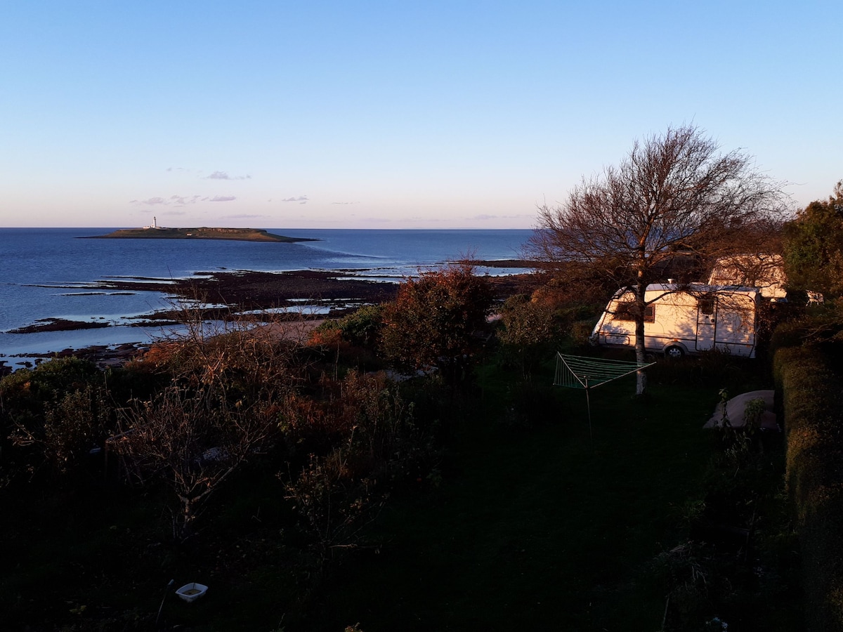 Seaview of Pladda & star gazing, electric heater, TV, DVD, electric sockets Back to Basics, small old caravan on cliff top, No WiFi, no running water, no shower, no smoking Bring food and a torch. 2 single couches change to double bed - 2 single douvets & Bedding in cupboard. Fridge, water container. 2 ring electric hob. utensils, Compost toilet. Outside tap Bus stop 1 min 2 mins Parking on- street not right next to caravan. Campsite shower pay £5 at reception Book on ferry
