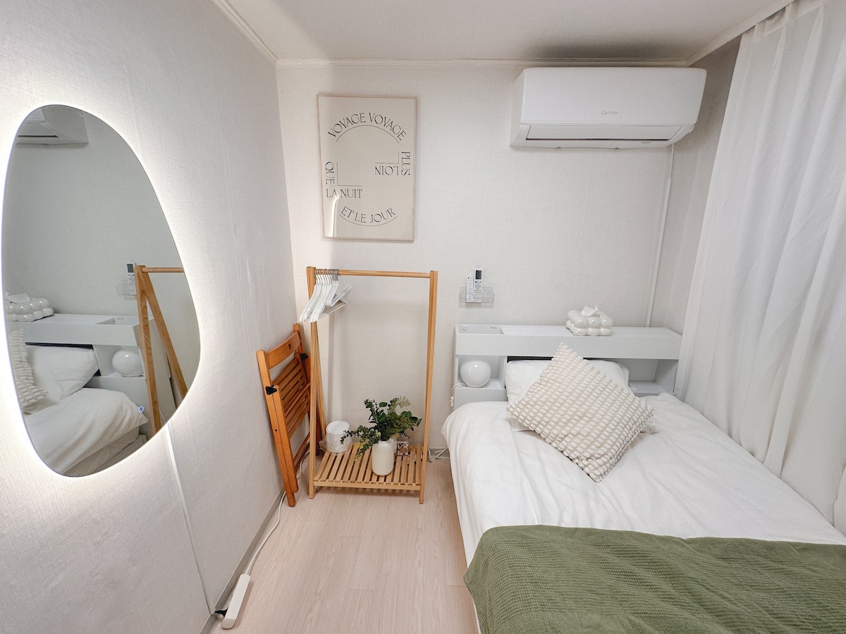 房間 101:「乾淨是最重要的!」 我們會考慮到這一點。 所有床單和毛巾都經過高溫滅菌+高溫熨燙,因此它們總是準備好,帶來清新的感覺。 寢具追求飯店品質 最近,我們新增了一張沙發床 升級空間,讓它更加舒適 它已重生為「溫馨木質氛圍」的住宿。 這是一間2房住宿,但這是一個舒適的空間,我們正在徹底管理它✨️,將清潔度維持為首要任務✨️。 道具和安排可能會因季節而略有不同。 靠近地鐵Dunchon-dong站,位於安靜的住宅區一樓。