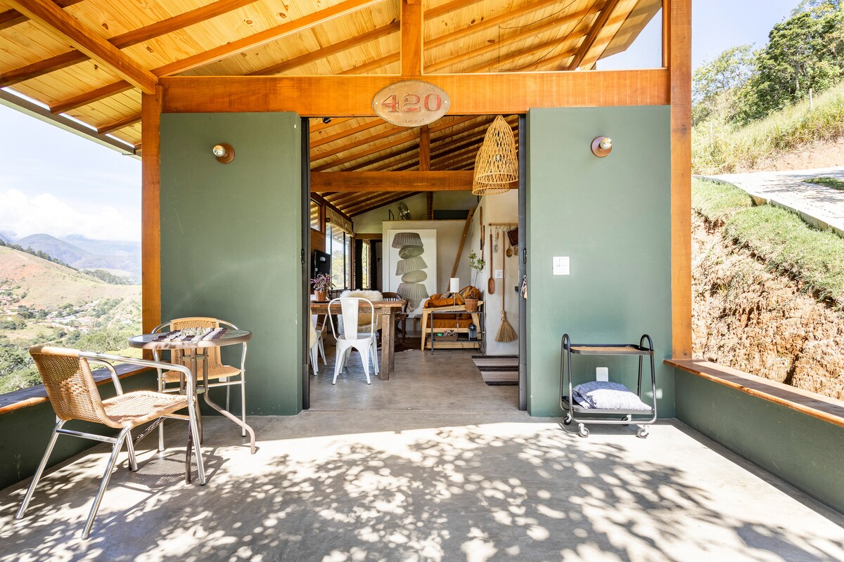 Uma experiência única em uma bela casa aconchegante com vista incrível. Cada cantinho da casa foi pensado e quando ficou pronta não me contive em dividir essa experiência com mais pessoas. Em todos os lados você é surpreendido com uma vista deslumbrante de mar de montanhas a perder de vista. Um verdadeiro convive da natureza para renovar suas energias. Ainda temos um balanço de 7 metros de altura com vista para as montanhas. Presenteada com um belo Pôr do Sol, impossível não se apaixonar.