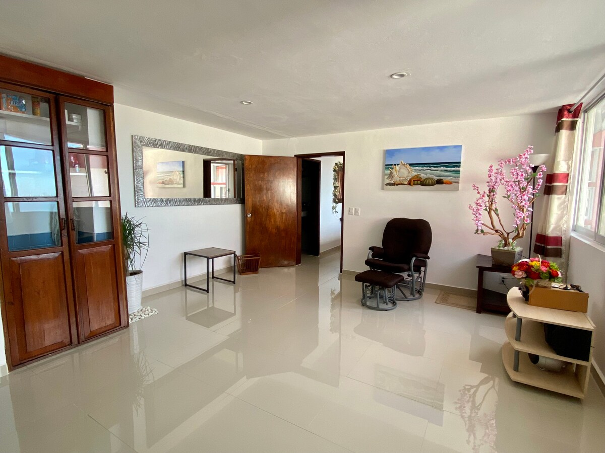 Excelente alojamiento tipo departamento acogedor con comodidades de un hogar, con privacidad de baño en tu recamara. Relájate con tus acompañantes en este alojamiento despues de ese dia de trabajo o paseos. Unidad habitacional tranquila. Ubicación de fácil acceso y cercania con restaurantes y a principales centros comerciales. servicio de facturacion!