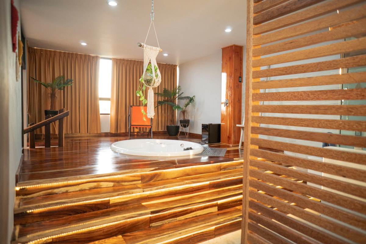 您一直夢寐以求的奢華和舒適,現在就在您的指尖。 非常適合與家人一起度假、私人晚餐或完美浪漫的約會,利用其獨家按摩浴缸,在日落時欣賞您最喜愛的音樂和飲料,這是一種體驗,這間寬敞的頂層公寓在共用房間內為您提供兩張雙人牀、配有加大雙人牀的私人套房、可使用Netflix等廣播服務的電視、全功能廚房和用餐區等廣播服務。