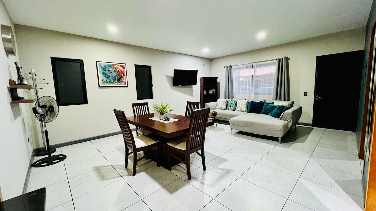 房源距離市中心 3 分鐘,方便搭乘公共交通工具,前往商店和自助服務商店。您會發現一個超級乾淨、舒適、愉快的住宿,並且待客服務極佳。位於市中心,靠近許多自助服務商店、醫院、瓜迪亞納公園和餐廳。房子有 2 間寬敞的臥室,配有風扇和迷你分離冷/熱、加大雙人床和 75 吋螢幕、洗衣機和烘乾機、電動車庫、數位鑰匙、飲水機。