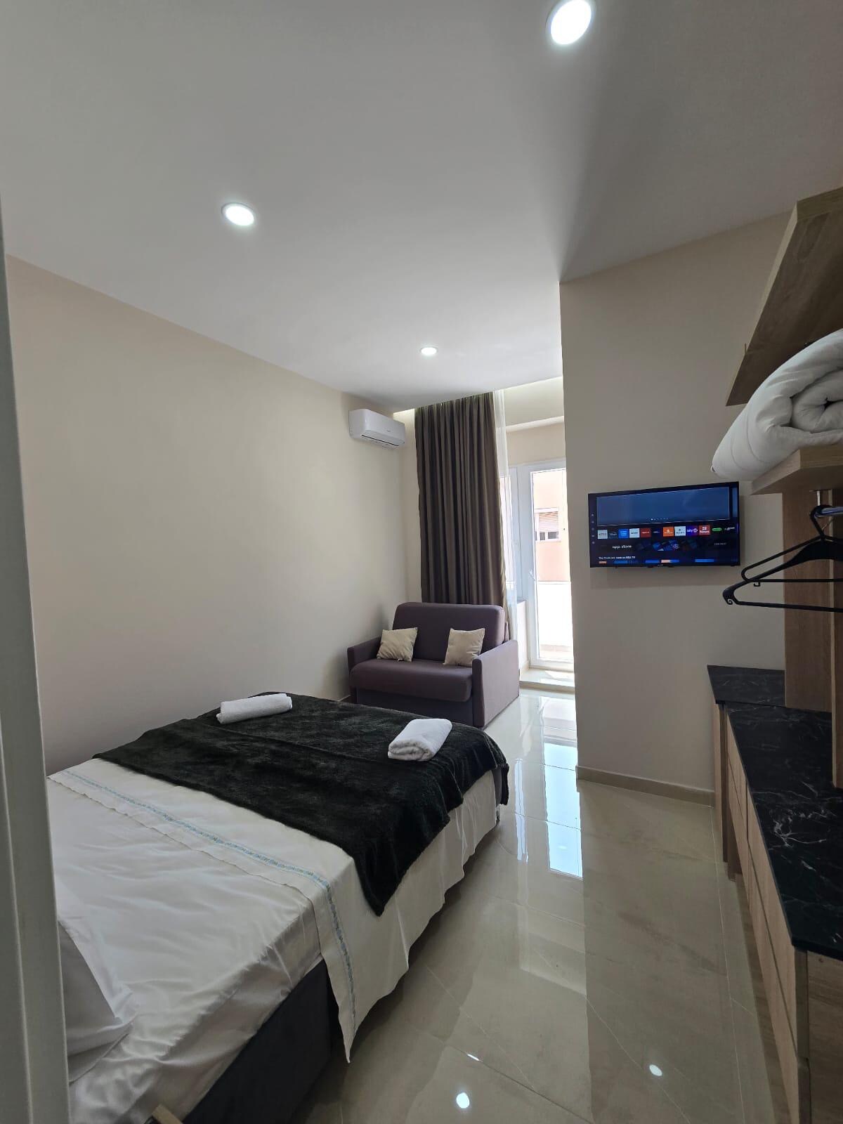 歡迎來到這間優雅現代的房間,位於安靜的客房內,距離都拉斯海灘僅一小段車程。 此空間旨在舒適和簡約,配有舒適的雙人床、配有淋浴間的獨立浴室、辦公桌、智慧電視和舒適的沙發,增加額外的休閒空間。 您還可以找到緊湊的迷你吧冰箱和時尚的室內裝潢,營造出溫馨的家一般的感覺。 非常適合情侶、獨自旅行者或短期商務差旅人士入住。