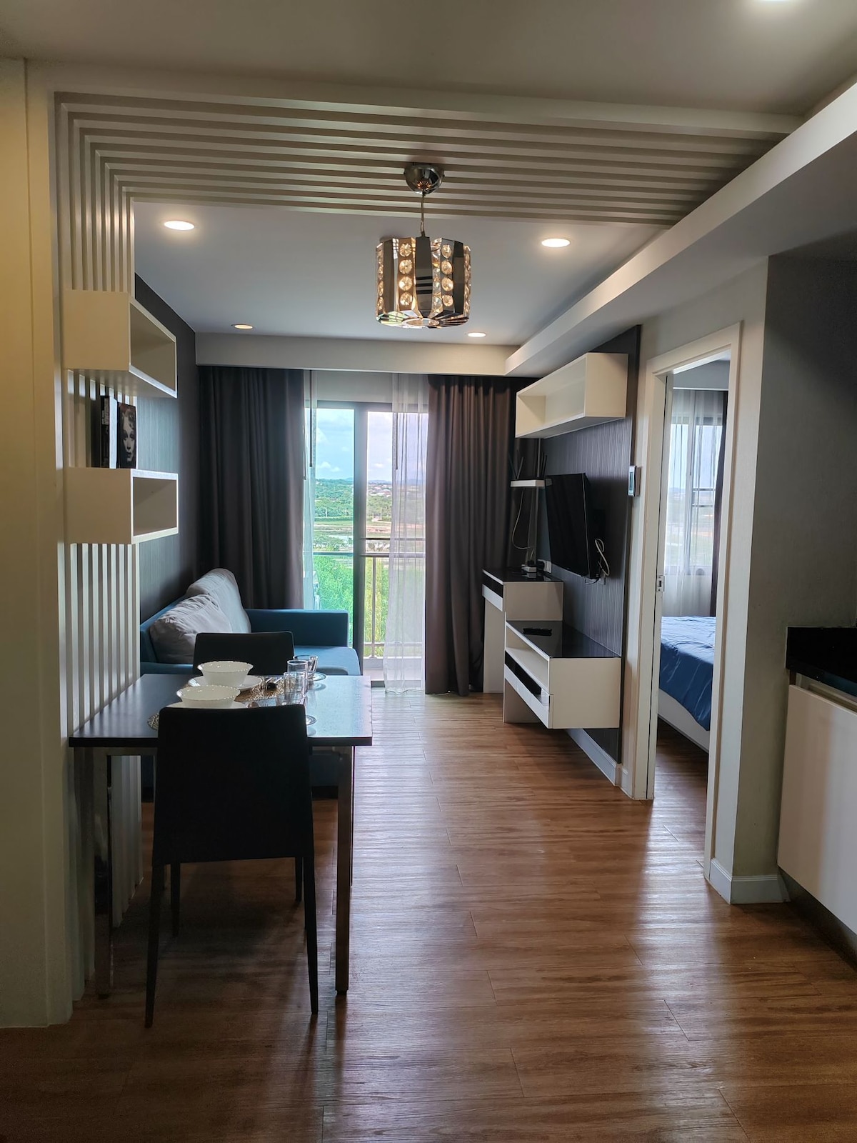 逃離繁忙的芭堤雅生活,在中天這個寧靜的地方放鬆身心。 -免費WiFi 200 MBPS -新電視、新沙發、新冰箱、新牀墊 -每日音樂劑量的USB喇叭 - 5,700平方公尺的「馬爾地夫」主題遊泳池 -多個按摩浴缸區、瀑布和日光浴甲板 -鬱鬱蔥蔥的熱帶景觀植物園 -現場有健身房和桑拿房 -從7樓陽臺欣賞日落,部分海景 - 如有需要,可提供個人室內年齡照護 -距離海灘900公尺 -距離芭塔雅市10分鐘車程