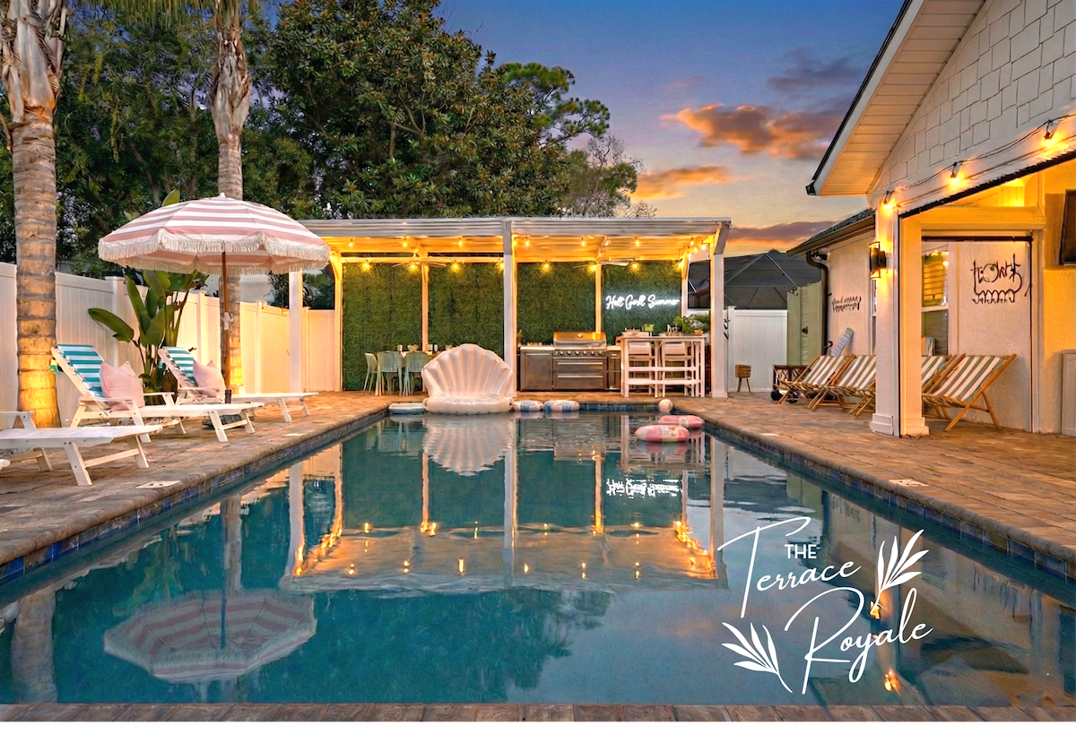 這間新裝修的 5 間臥室/3 間浴室房源設有溫水泳池、私人電影院、迷你高爾夫球場,以及所有生活必需品,讓您輕鬆入住。 設有寬敞的餐廳、獨立的客廳和專用的娛樂空間,成人可以在孩子們享受電影或電玩遊戲的同時放鬆身心。 佈局提供空間和隱私,大廳下方有三間臥室,另外兩間相隔,非常適合家庭和團體。 步行15分鐘即可抵達海灘、很棒的當地餐廳和酒吧。