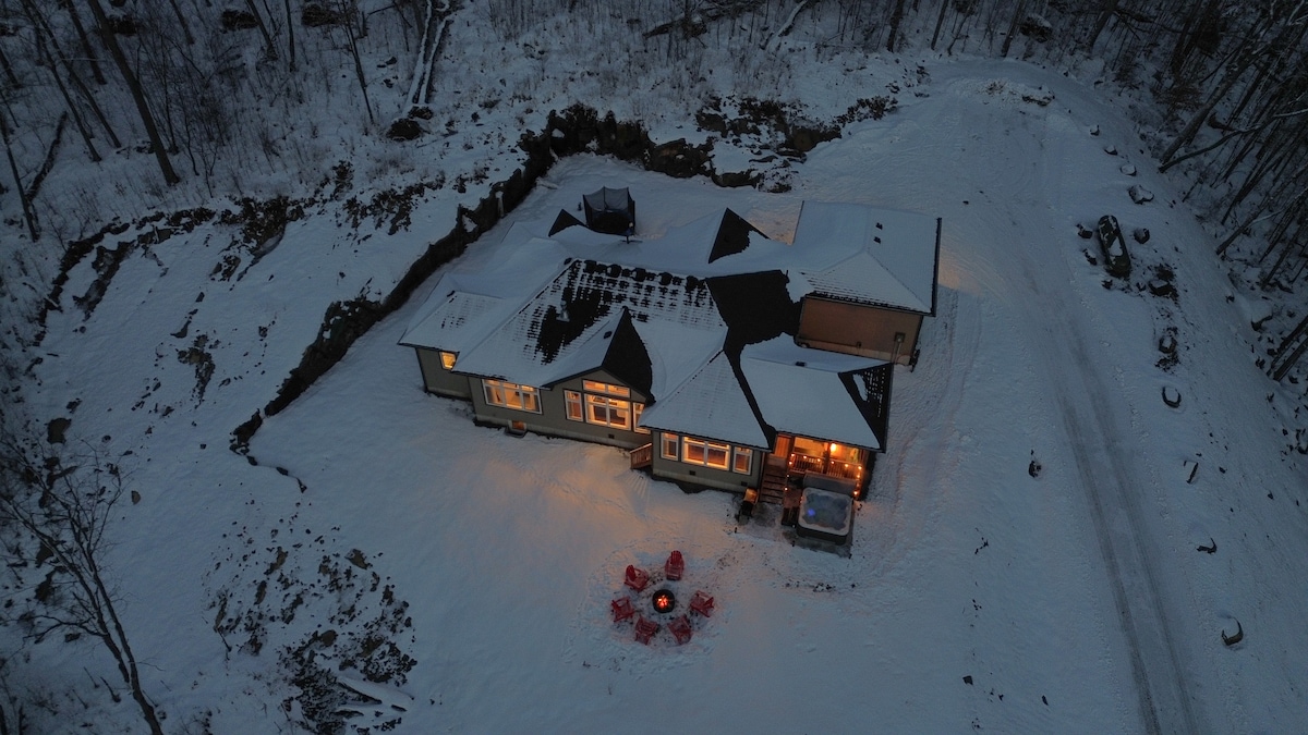 Muskoka Luxury Chalet Retreat ❄️ 在安大略省亨茨維爾的這間令人驚嘆的5臥室豪華小屋中探索您的冬季度假勝地。 距離隱藏谷滑雪度假村和箭頭省立公園著名的滑冰步道僅幾分鐘路程。 您可以在私人熱水浴缸中泡澡,在火坑旁聚會,或在舒適的客廳享受電影之夜和棋盤遊戲。 配備高速Wi-Fi、遊戲室和私人步道,每個人都能找到適合的餐點。 立即預訂住宿!