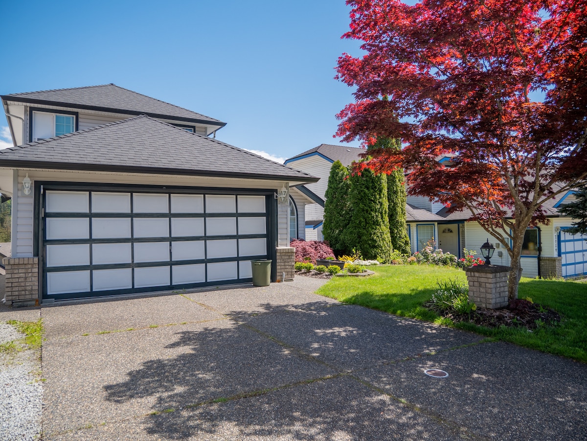 自備兩間臥室的地下套房,獨立入口,安靜的社區內設有功能完善的廚房、洗衣機和烘幹機。 車道上有兩輛車可供旅客停放。套房內有暖氣控制的加熱地板。 靠近主幹道和公共交通工具。靠近Coquitlam市中心和公園。可使用後院秋千。