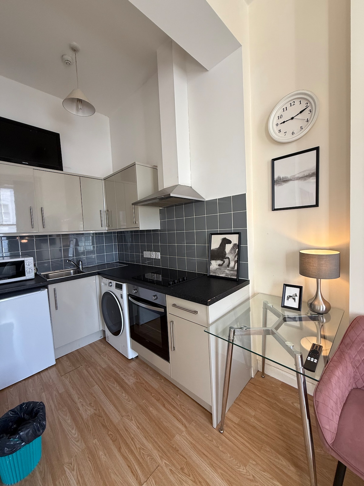 此房源完全獨立,包括廚房和浴室。 沒有共用空間。此房源可供 4 人入住。有 55 吋的電視。房源設有大型廚房、大型冰箱和洗衣機。 浴室內有浴缸和淋浴間。 地理位置優越,靠近伯爵宮站和西布朗普頓,有地上線。您非常靠近著名的國王路,前往機場非常方便。 對面有便利商店和披薩店。