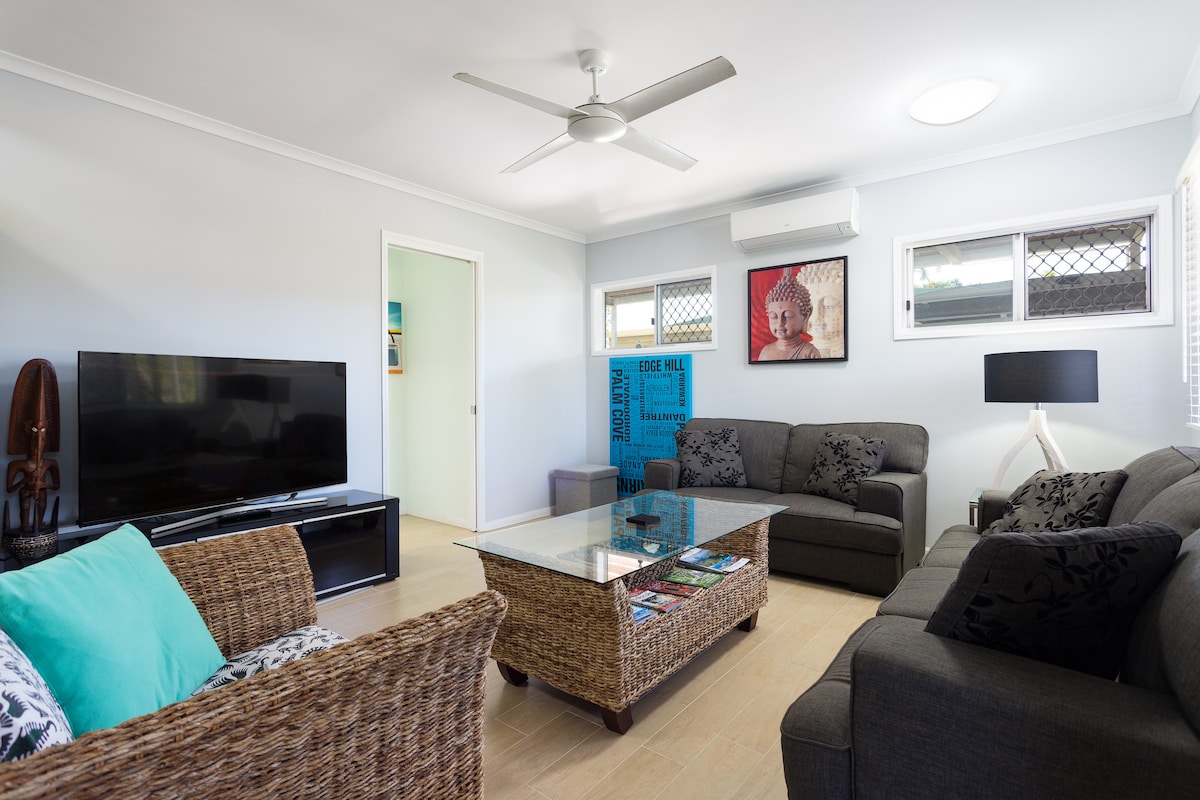 We welcome all nationalities from abroad and locally to our fully furnished one bedroom unit which has been added to our existing family home. You have your own entrance, bedroom, kitchen, bathroom and living area with sofa lounge that converts into a double bed. We are situated in a quiet family friendly cul-de-sac with free parking on site. We are approximately 14 minutes drive from the Cairns Airport or Cairns City Centre, therefore we highly recommend your own car.