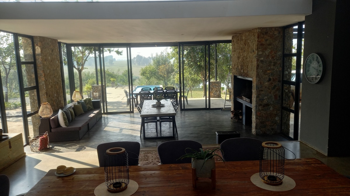 • Summerview Farmhouse提供自助式餐飲,最多可供 8 位房客入住 4 間臥室。 農舍是位於莊園上的私人住宅,有自己的花園和非常大的游泳池。 • 房間寬敞、確實巨大,且設備精良。 • 免費 WiFi •配有DSTV Explorer的大型平面智慧電視。 • 美食冰機 • 房客可自由漫遊農場。 • 房價不包含餐點,但歡迎房客在River Café餐廳享用餐點,需額外付費。