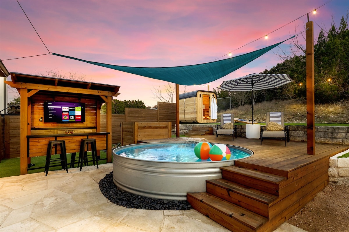 ✨奧斯汀終極單身派對度假屋• 新裝修•可容納16人以上•距離DT 10分鐘 🏡現代化5臥室/3浴室房源,適合單身派對和團體旅行 🛏 10 張真床 💦加熱和冷卻的牛仔泳池 😎按摩浴缸可容納6人 🔥 營火休憩區 ⛳️ 打出果嶺球 🍔 烤肉架 + 用餐 👾經典街機遊戲 ♠️ 官方撲克桌 🏓乒乓球和🎱撞球桌 🕹任天堂 Switch + 馬里歐賽車與大亂鬥 🍿大電視,適合觀看運動和電影 設備🍽齊全的廚房 距離市中心🚘10分鐘 🐶 寵物友善