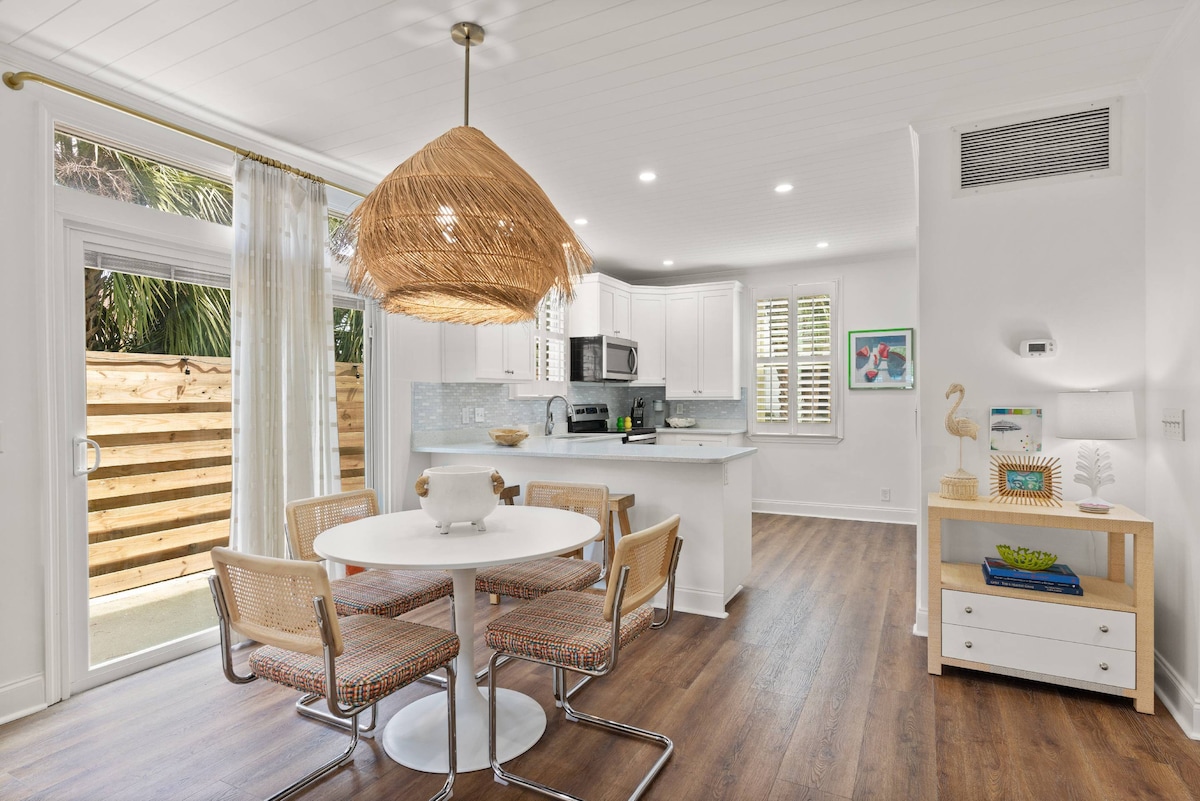 距離海灘3個街區,步行10分鐘即可抵達村莊。 這是一個安靜的街區,非常適合在露臺上享用早晨的咖啡或下午的清爽飲料,您可以在露臺上聽到海浪聲。接受佛羅里達州教育和培訓委員會(FLETC)每日津貼。 房東可自行決定是否接待狗,並收取額外費用。 格林消費稅 #013038