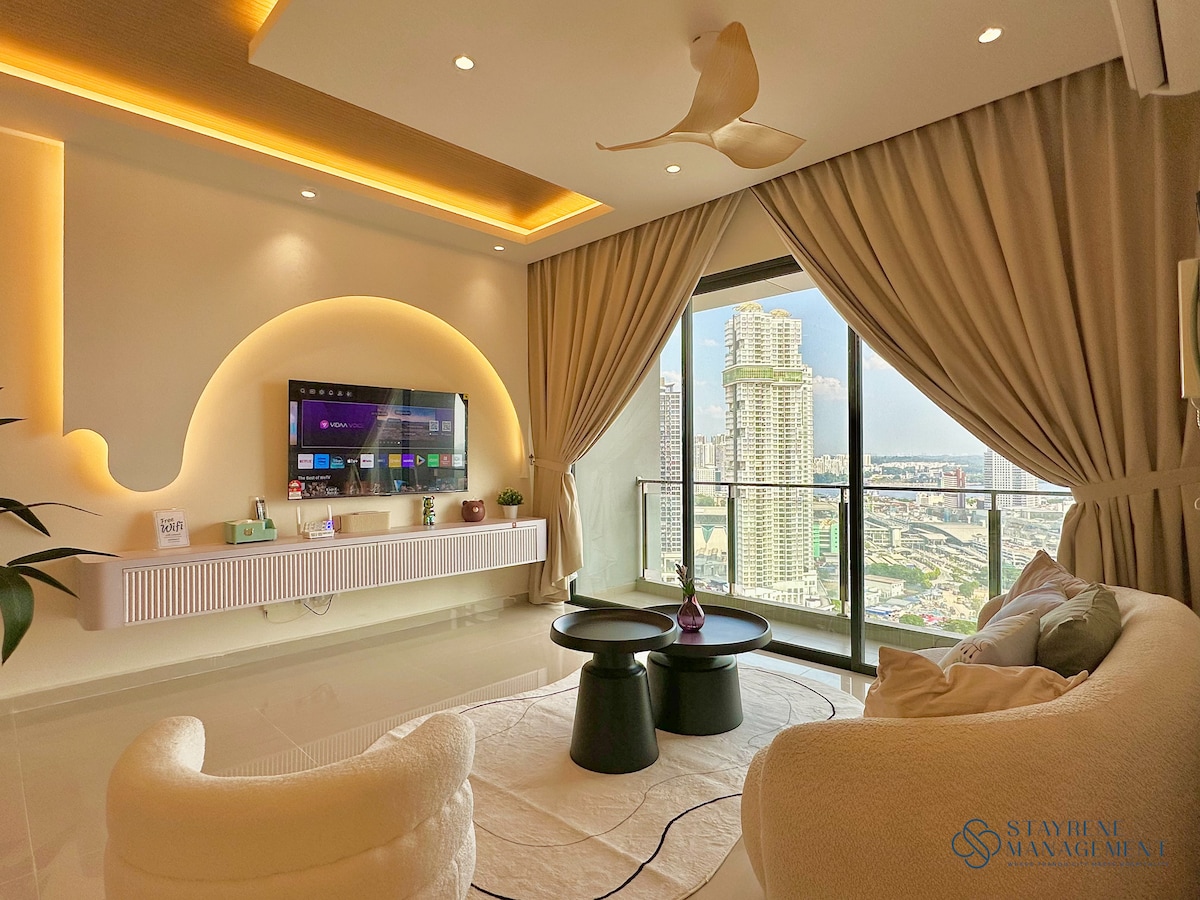 * 2026年3月4日和5日不提供停車位* Airbnb房客,您好!=) 我們可愛的房源位於R&F Princess Cove ,這是一間豪華的雙臥室公寓套房,就在R&F商場上方。 我們的位置也很方便,步行約8分鐘即可抵達JB CIQ/JB Sentral。 我們有1張加大雙人牀、1張雙人牀和一張大沙發牀,可容納5-6位房客。 我們的沙發牀最多可延伸至幾乎一張標準雙人牀! 但我最喜歡的是我們的圓形餐桌,最適合蒸汽船會議!