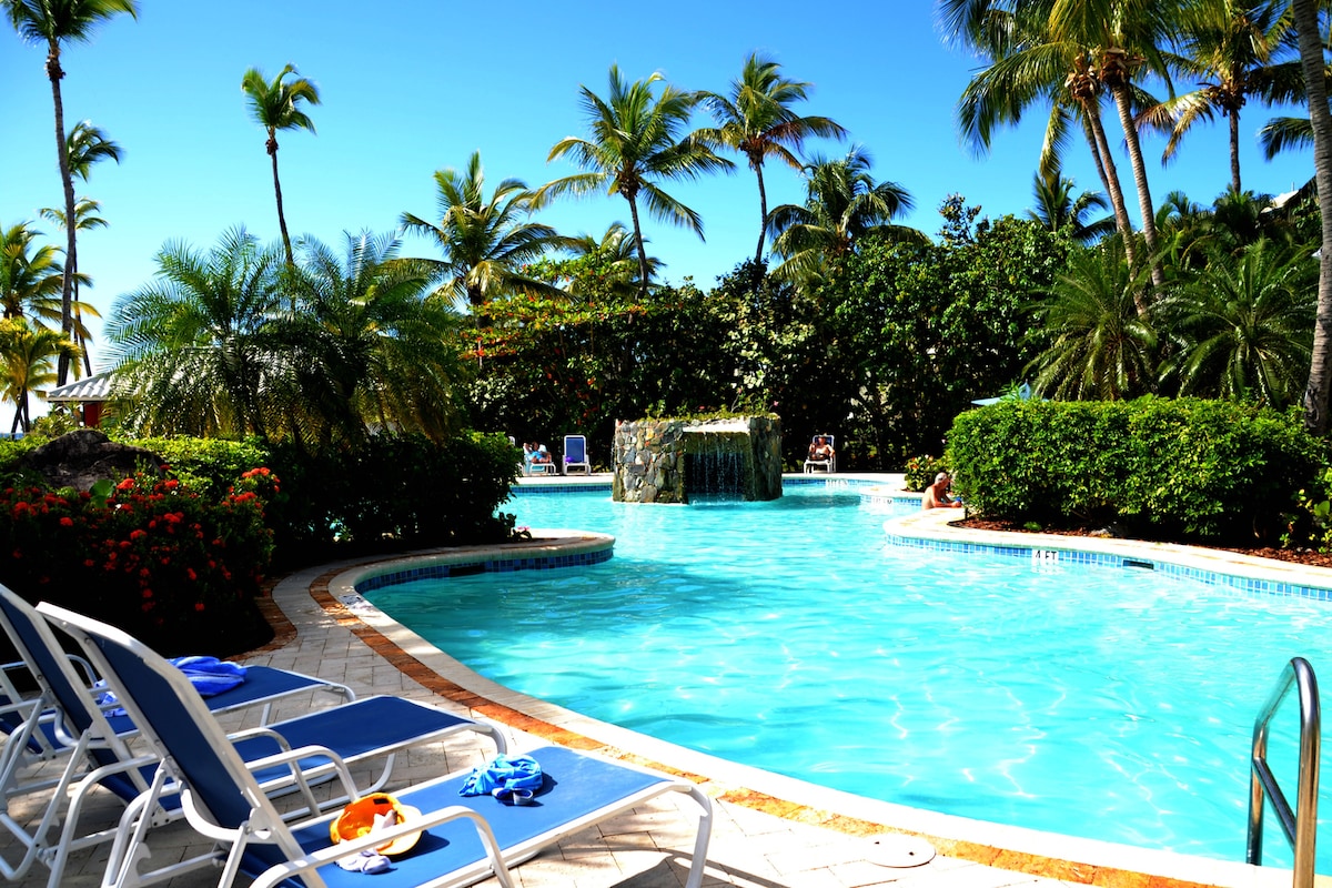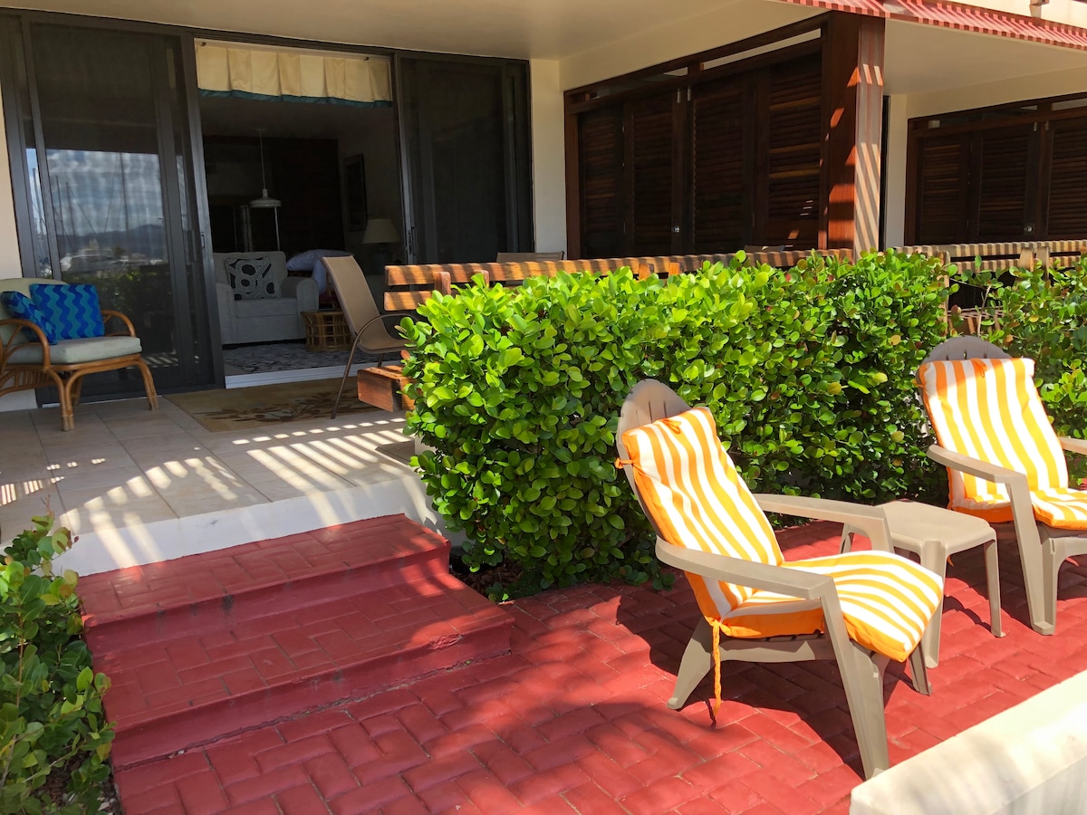 來到我們位於碼頭上的Sapphire Village的公寓放鬆身心!從陽臺上可欣賞美麗的碼頭景觀。步行即可抵達海灘!1張特大床!房源配有飯店設施,包括2個泳池、非常好的浮潛、3間餐廳、海灘酒吧、咖啡店!安全的位置。附近有計程車可前往雜貨店、Red Hook (車程3分鐘)享用晚餐、St. John Ferry、當地海灘。距離機場25分鐘路程!