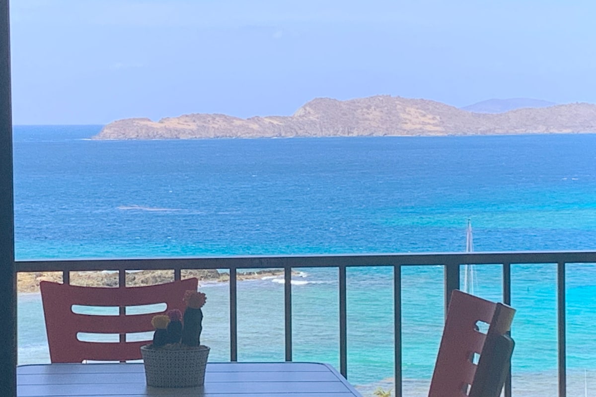 這間更新和時尚的公寓可欣賞加勒比海和鄰近的聖約翰島和英屬維京群島的美景。約翰和英屬維京群島!我們位於Sudi 's Pool Bar & Grille和第二個社區泳池之間的Sapphire Village。步行2分鐘即可抵達碼頭,再走幾步即可抵達美麗的藍寶石海灘(Sapphire Beach),那裡有3間餐廳、酒吧、精品店和咖啡店。Red Hook開車很快就能到餐廳、娛樂場所和前往聖約翰島/英屬維京群島的渡輪。John/BVI。如果您在住宿期間需要車輛,請詢問!