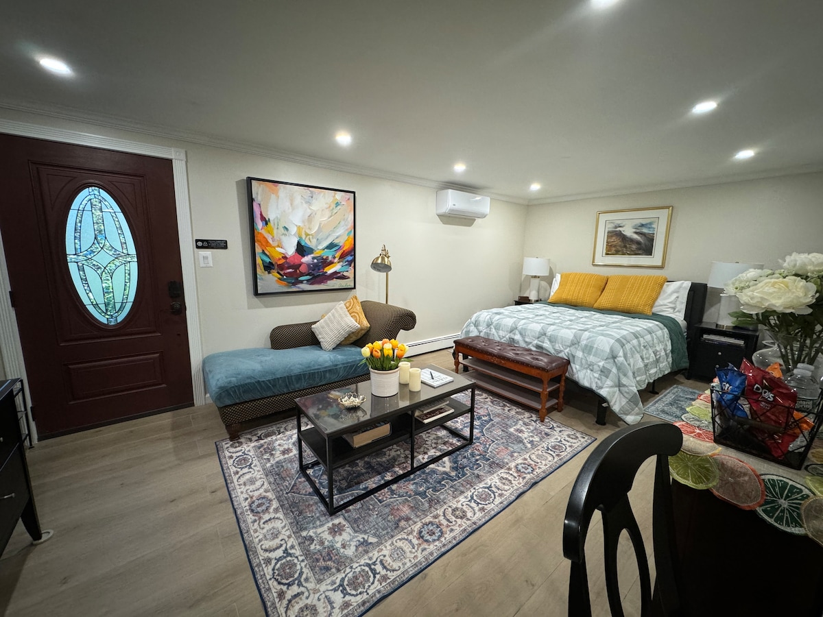Welcome to The Stone House—your cozy home away from home! This beautifully appointed basement apartment comfortably accommodates up to 4 guests, with a cozy bedroom featuring an en-suite bathroom and a queen sofa sleeper in the living area. Enjoy nearby restaurants, shopping, and entertainment, with easy access to parks, public transportation, and major airports. Please note: No pets are allowed, and smoking is prohibited inside the apartment. We look forward to hosting you at The Stone House!