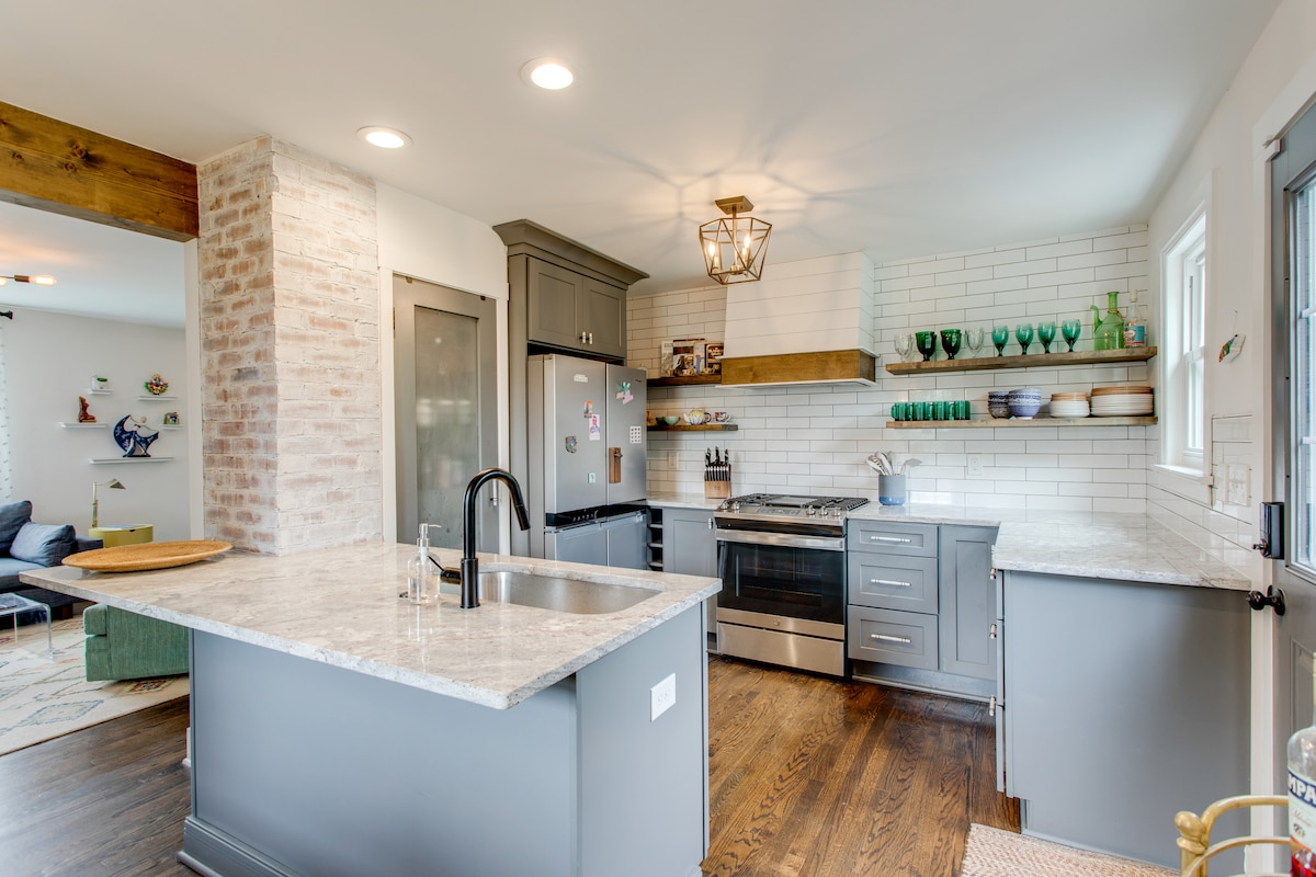位於歷史悠久的Edgefield -東納什維爾最古老、最美麗的街區的安靜、私人的時尚公寓。 步行即可抵達5點,步行即可抵達市中心。 大型開放式樓層,配有廚房、洗衣房和露臺。全套定制櫥櫃、10英尺高的天花板、高端家具和最舒適的記憶泡綿床墊。全新的暖通空調系統,提供乾淨的空氣、工作空間+快速WiFi。*這是一間完全獨立的公寓,有獨立入口、停車位和院子,位於主屋後面。