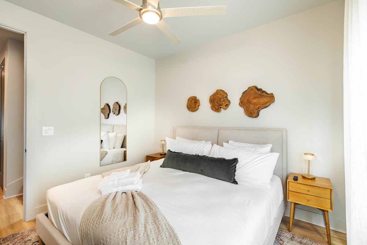 Welcome all guitar players and music lovers! This 1 bedroom unit with king bed and queen sofa bed uses a musical theme and modern elegance to create a unique experience. With premium amenities, we’ve created the perfect home while visiting Nashville. ☆Dedicated work space- 100mbps wifi speed ☆Access to Gym & Steam Room ☆Just miles from the Gaylord Convention Center, DT Nashville, Airport & Opryland! ☆Self Check-in ☆EV Charger ★No pets allowed ★No parties allowed ★No smoking