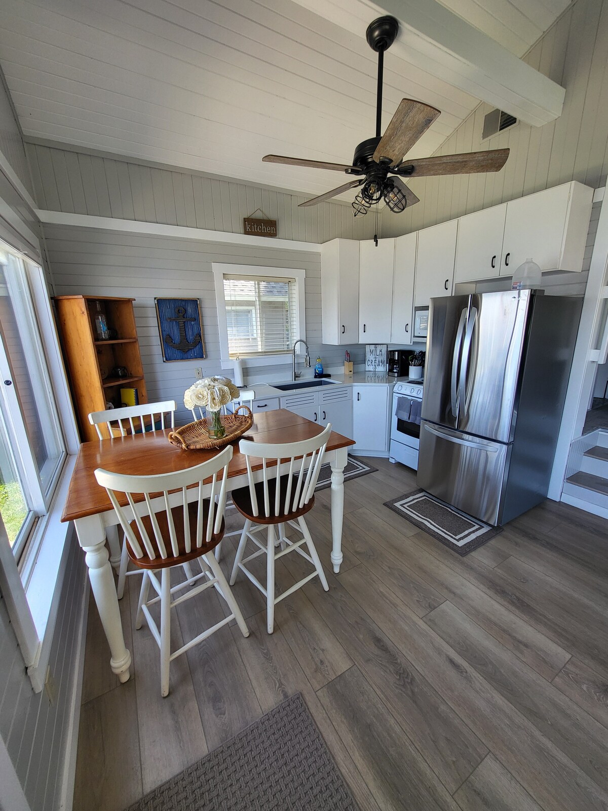 自2021年7月1日起,我們搬進了這個美麗的湖畔房源。 AIRBNB不是我們的整套房源,但整個下層是我們的家。 美麗的私人湖畔景色。 寬敞,設有獨立入口(如適用)、大型小廚房、家庭房、餐廳、2間臥室、浴室/淋浴間全套衛浴。 湖畔通道。穀倉門關上有完全的隱私。