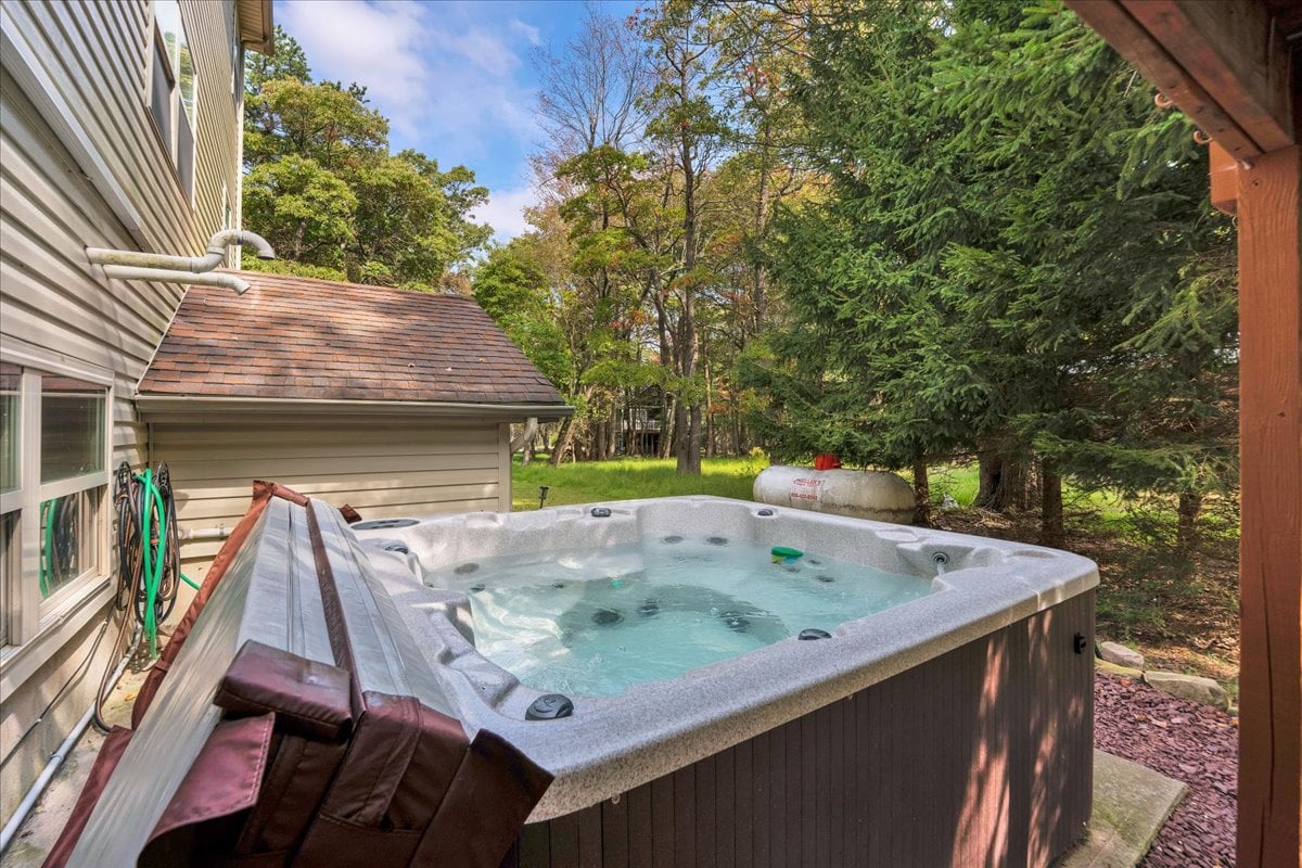 這座令人驚嘆的小木屋坐落在波科諾山脈。 您的週末度假或全年長期住宿的目的地! 在外面,您可以在美麗的1英畝私人林地、按摩浴池、兩個火坑、早晨咖啡的露臺或美味的燒烤中享受自然環境。 我們的房源提供寧靜的室內氛圍,地理位置方便,靠近所有波科諾山的季節性活動。無論您想放鬆身心還是充電,我們的房源都能提供完美的度假勝地。