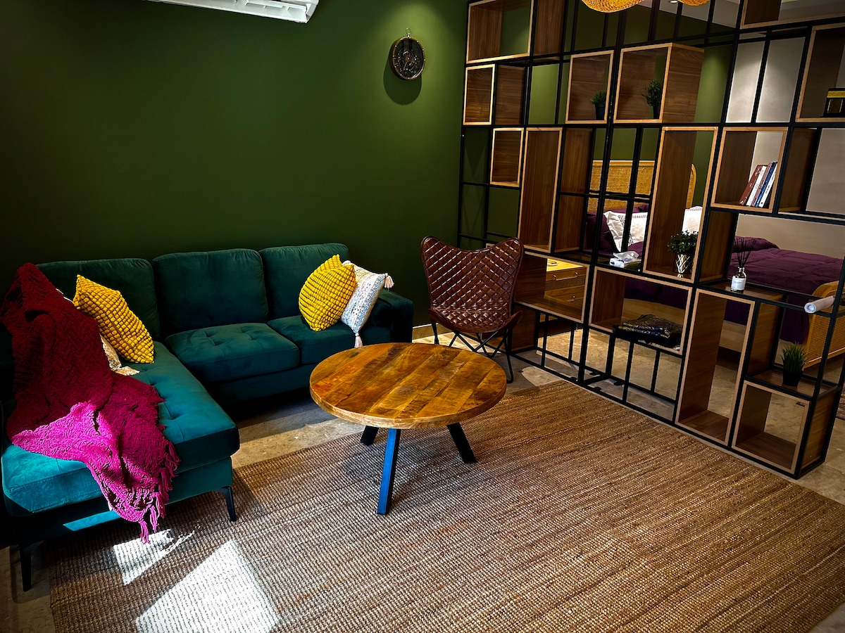 在這間獨特而寧靜的住宅中放鬆身心,享受如同在家一般的舒適體驗。一樓設有 PlayStation 遊戲機、撞球桌、冷熱飲品;二樓設有風格獨特的臥室;三樓設有附洗衣房的私人臥室,並提供額外衣物。此外,還可應要求使用私人庭院、小型健身房、毗鄰的泳池服務以及 Diwaniyah 提供的泳池招待服務。