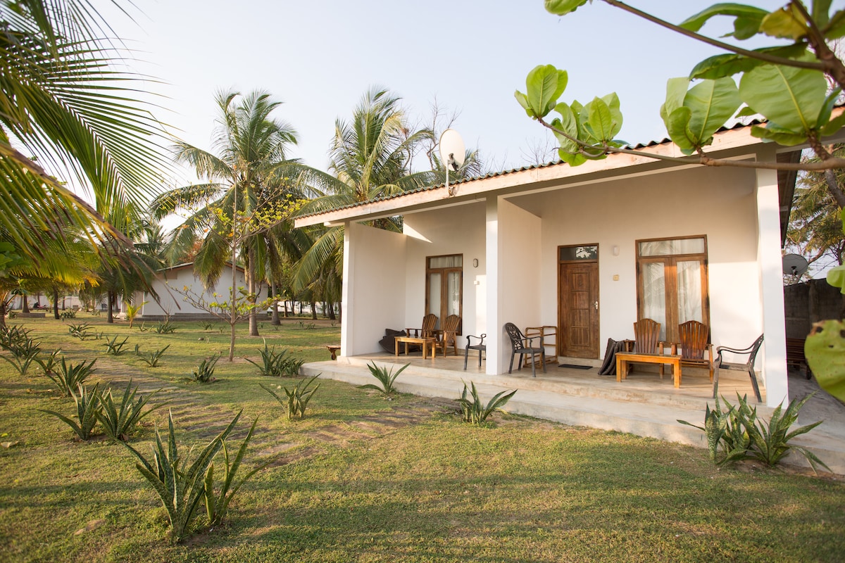 We are located 10km away from city in Sampalthivu. Quiet and isolated. Ideal for guests who really needs a deep relaxation. Since we are in a REMOTE area, a tuk tuk can be arranged for your transportation and dinning out. We do arrange dolphin watching, whale watching and pigeon island trips (seasonal). In house restaurant is available. And the swimming pool. We serve wine and local beer. Since we buy fresh, we generally take your meal orders in advance.