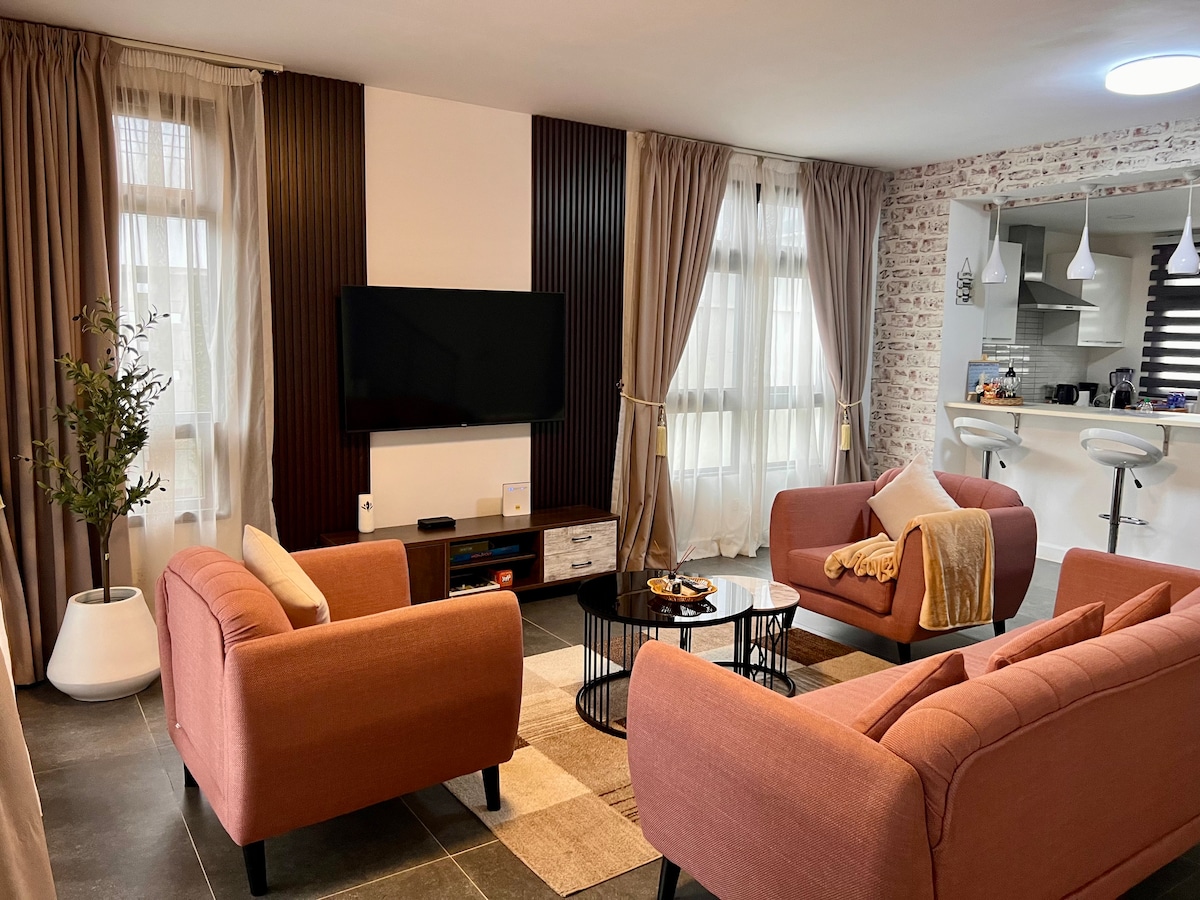 歡迎來到我們舒適的7位房客聯排別墅! 享受迷人的一層度假勝地,配備現代化設備與服務。 在開放式起居區域放鬆身心,在設備齊全的廚房烹飪,並一起用餐。4間臥室套房和浴室,確保您住宿愉快。 在平板電視或有趣的遊戲之夜欣賞節目。 與Wi-Fi保持聯繫,並享用新牀單和洗漱用品。 靠近Aburi周圍的景點,距離機場25-30分鐘路程,是您的完美度假勝地。 馬上預訂,留下難忘的回憶!