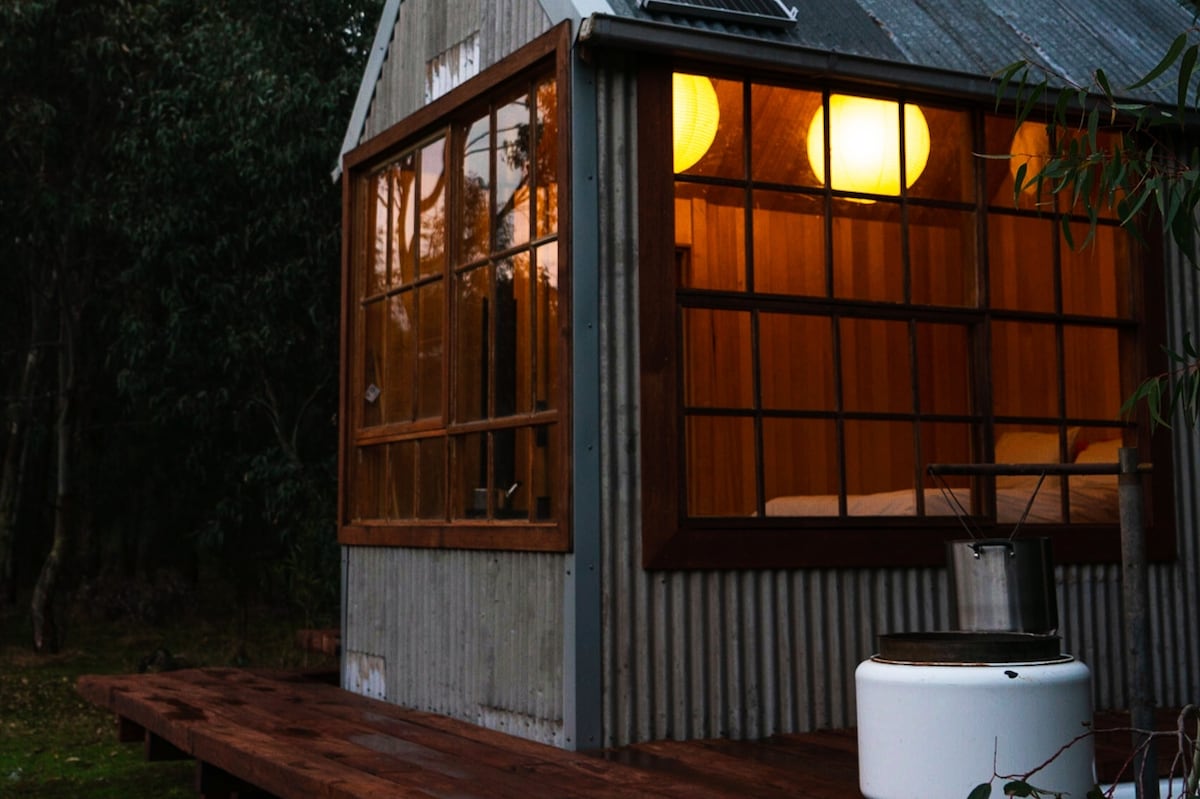 漫步在樹木之間,前往我們用回收材料精心建造的手工小屋,可欣賞到我們再生農場到山脈的壯麗全景。在室內依偎在木質暖氣旁,在室外放鬆在手工鑿刻的紅色口香糖甲板上,配有內置浴缸、室外淋浴間。 戶外廁所可欣賞濕地及其野生動物的景色! 步行10分鐘即可抵達Gariwerd步道,以及美味的咖啡、當地釀酒廠和Halls Gap餐廳。來連接吧!