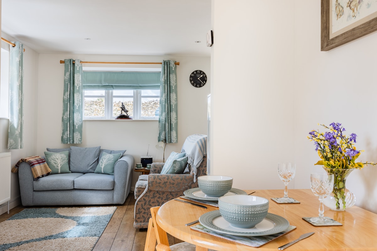 一個可愛的獨立開放式房屋,坐落在安靜的花園中,俯瞰鄉村。有自己的入口和停車位。在寬敞的餐廳放鬆身心,可容納6人,欣賞美麗的田野景色。臥室可設置為加大雙人床和雙人床,或加大雙人床和超大雙人床。步行即可輕鬆抵達村莊商店、郵局和Rattlebone Pub ,是理想的住宿地點。 房子旁邊有一個安全的花園和田野,您和您的狗可以進入。