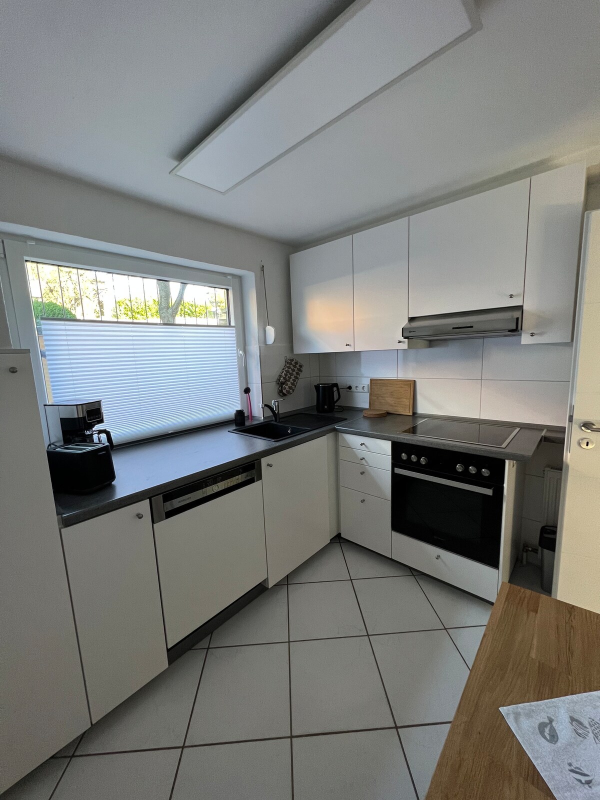 帶大露臺和花園的單層公寓 位於北海和波羅的海之間,石勒蘇益格-荷爾斯泰因州中部的運河上,在倫茨堡附近的韋斯特倫菲爾德 舒適、明亮、現代化、56 平方公尺、開放式佈局、高級設備、設計師設計的地板。面向西南,擁有自己的露台,與外界有著密切的聯繫。 客廚配有洗碗機、冰箱、循環式烤箱、電磁爐、循環式抽油煙機、垃圾分離系統和與客廳及用餐區相連的櫃檯。 地暖、電視(有線)、Wi-Fi