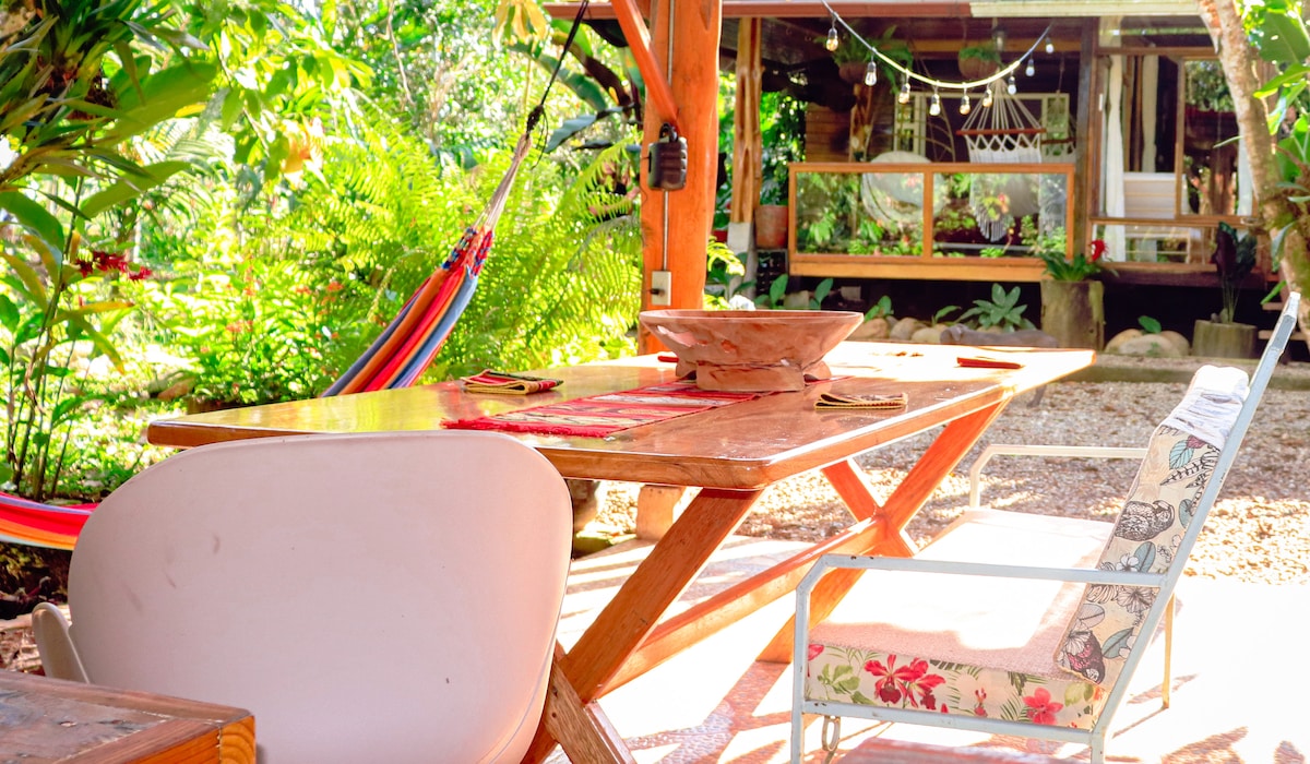 Es un espacio dedicado a los amantes de la naturaleza y la tranquilidad, para disfrutar del canto de los pájaros, ver animales en su hábitat natural como los monos titi, mariposas y muchos otros, este espacio cuenta con todas las comodidades y decoración rústica. La finca cuenta con 12ha de terreno, dos caballos, pescados tilapias y animales de granja, claro también árboles frutales autóctonos. La casa y los patios son de uso privado y exclusivo para los huéspedes.
