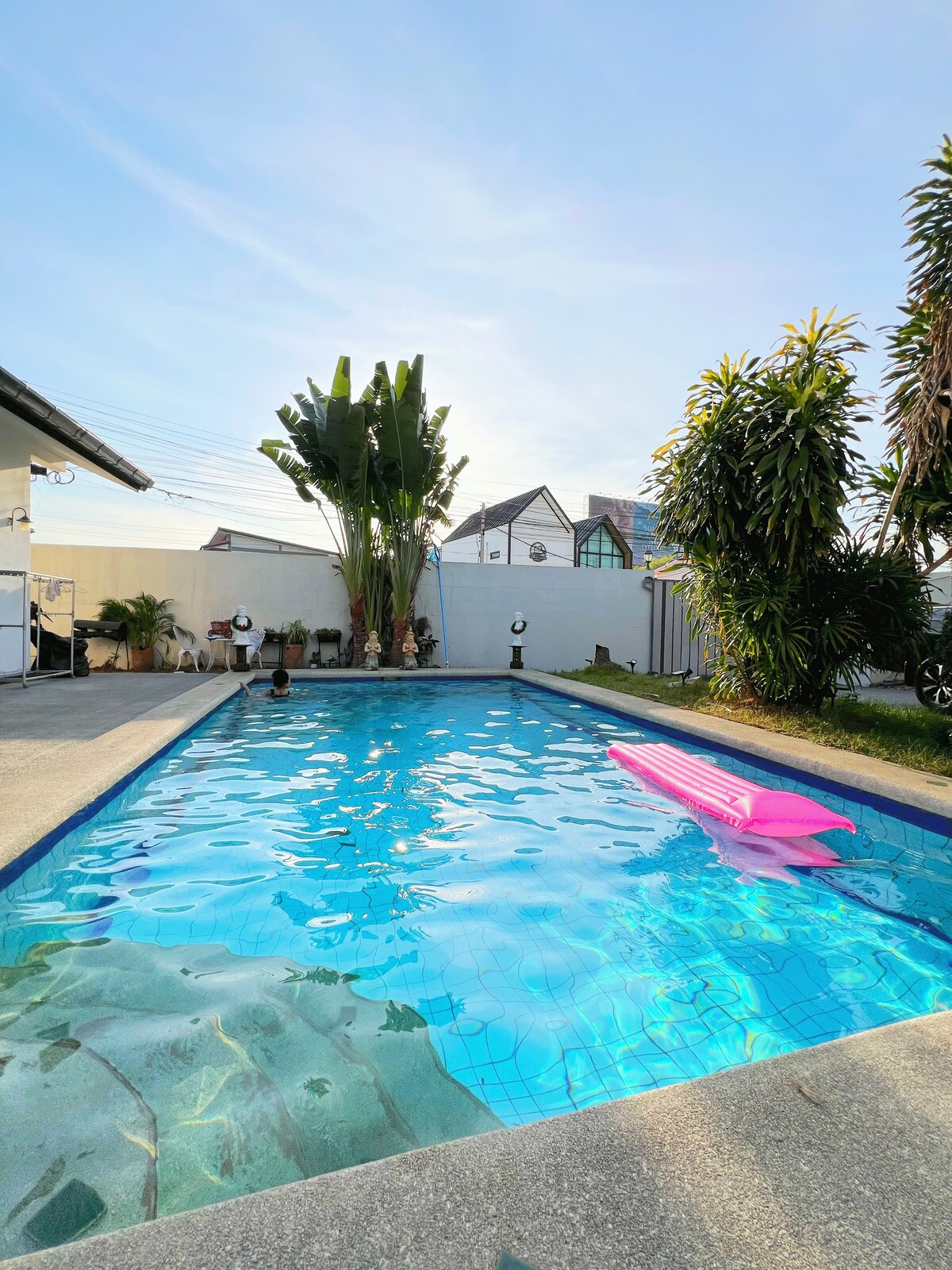 亲爱的房客朋友,您好! ①🏡别墅位于芭提雅中天区域,共有5个卧室,5个卫生间。每间卧室都配有独立的卫生间。别墅有很好的隐私性,全新装修,拥有独立泳池。 ②🌊距离中天海滩仅仅800米 周边配套齐全,出小区300米内有多家餐厅,药店,711便利店等 🚘距离中天夜市,周末夜市5分钟车程 🚘距离格兰岛码头15分钟车程 🚘距离79成人秀10分钟车程 🚘距离步行街15分钟车程 🚘距离网红美人鱼餐厅🧜♀️15分钟 🚘距离唐人街/21航站楼/Central购物中心10分钟车程 ③🏡别墅出行方便,生活便利,安静舒适,能容纳8-10人聚餐,超大客厅餐 厅,管家24小时免费贴心服务 ④有偿服务 曼谷芭提雅接送机服务、各大秀场门票优惠预定、高端定制、租车、包车、包船、翻译、地陪向导、厨师等