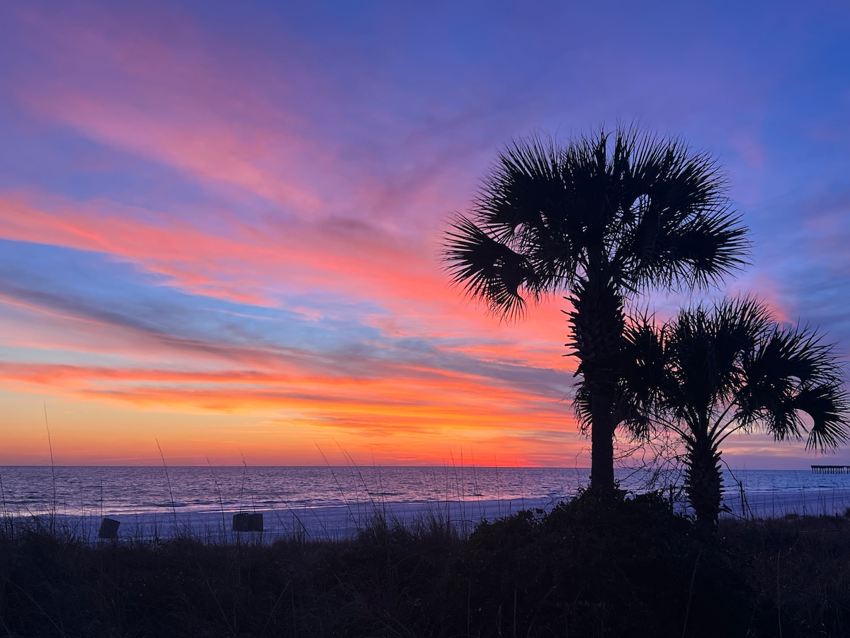 海濱公寓,毗鄰M.B. Miller County Pier,距離沉船島水上樂園(Shipwreck Island Water Park)只有一個街區! 在25英尺的私人陽臺上放鬆身心,欣賞令人驚嘆的海灣景觀。 包括免費沙灘椅服務,可供2人使用(價值50美元/天)。 我們的2BR/2BA公寓可舒適地睡5人(最多可容納6人),並配有全尺寸洗衣機和烘乾機,讓您可以輕鬆打包。