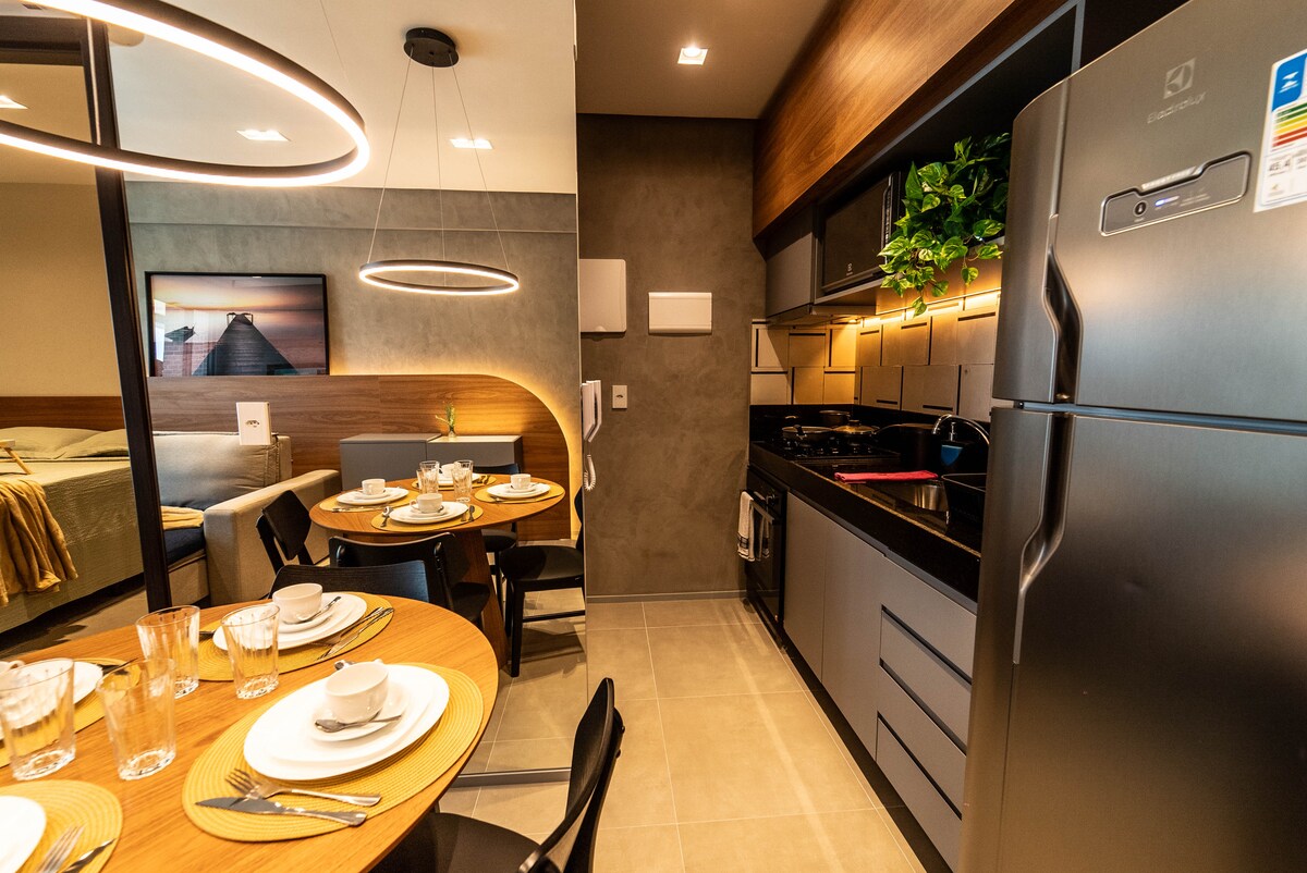 1023 是一個為尋求舒適、便利、時尚和安全的人提供完美住宿的單間公寓,位於馬塞約最好的街區。配備了頂級設計家具,並以我們的藝術家 Thiago Laion 的當地照片進行了精美的裝飾。Time uma 大樓距離 Ponta Verde 海灘 250 公尺,是一件真正的藝術品,為客人和居民提供溫馨奢華的環境。