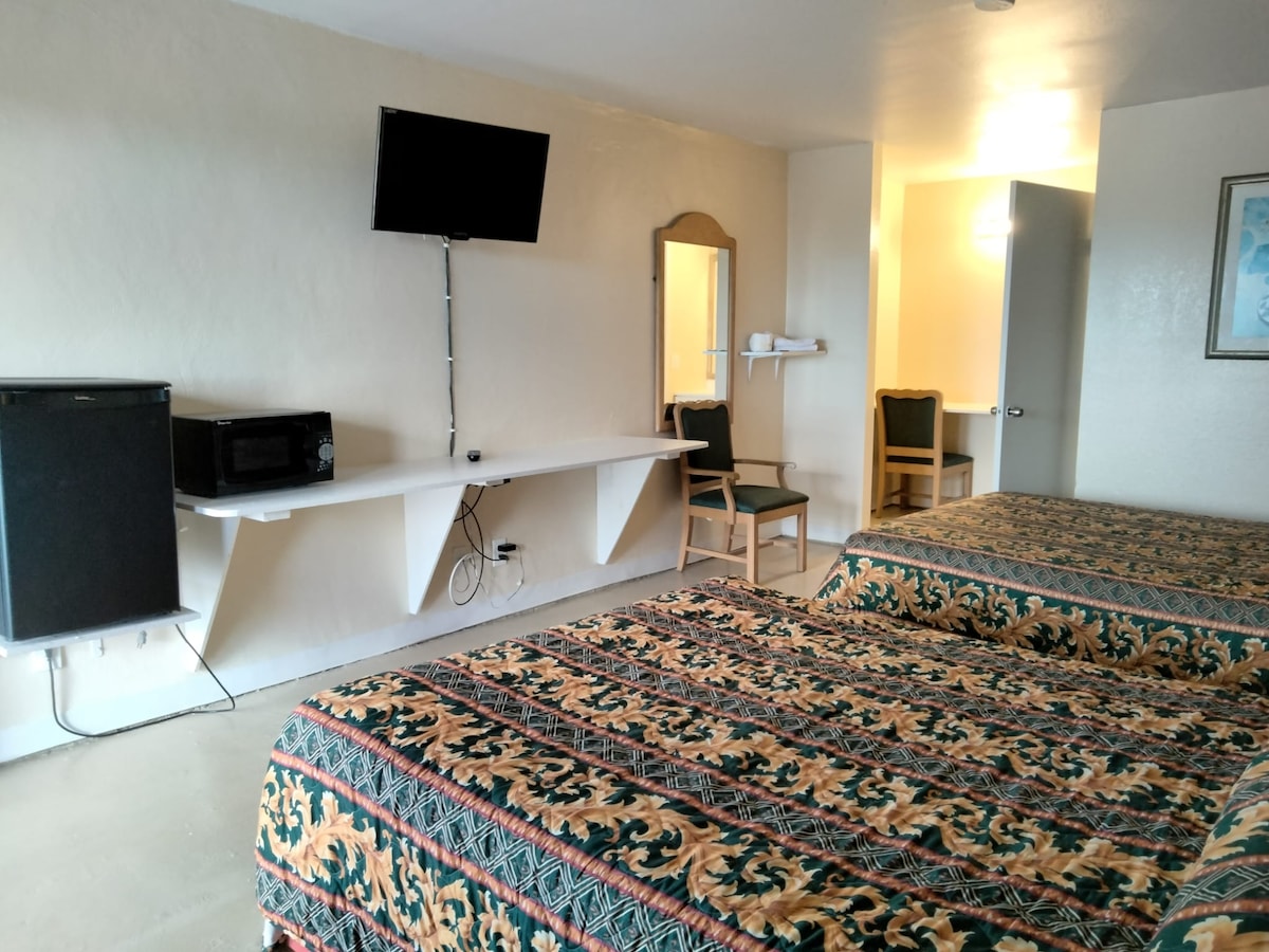 Family owned and operated. We just obtained the hotel so we working on rooms. Please support our small business. 24 hr front desk. 1 bed room. Any question please message us. We have a huge parking area for bigger vehicles..