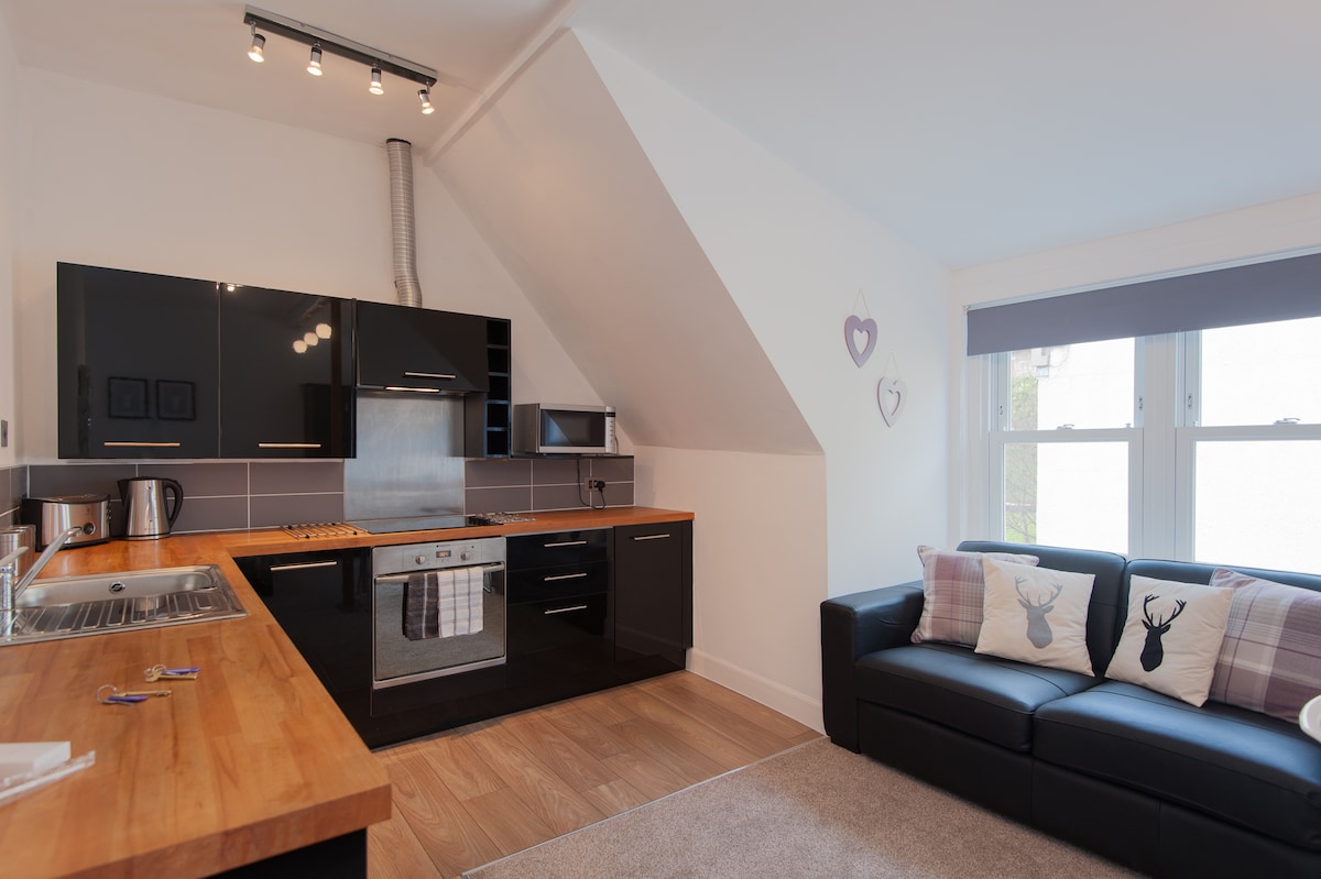 時尚的單臥室公寓,位於歷史悠久的舊城區的愛丁堡城堡岩腳下。這個家外之家安靜地隱藏在一個安全的建築群中,是遠離愛丁堡繁忙街道的完美度假勝地,同時仍位於市中心。 公寓配有現代化的廚房和休息區、亞麻床上用品和淋浴間。 歷史悠久的Grassmarket和周圍的舊城區是探索的好地方,有很多地方可以吃飯和喝飲料。
