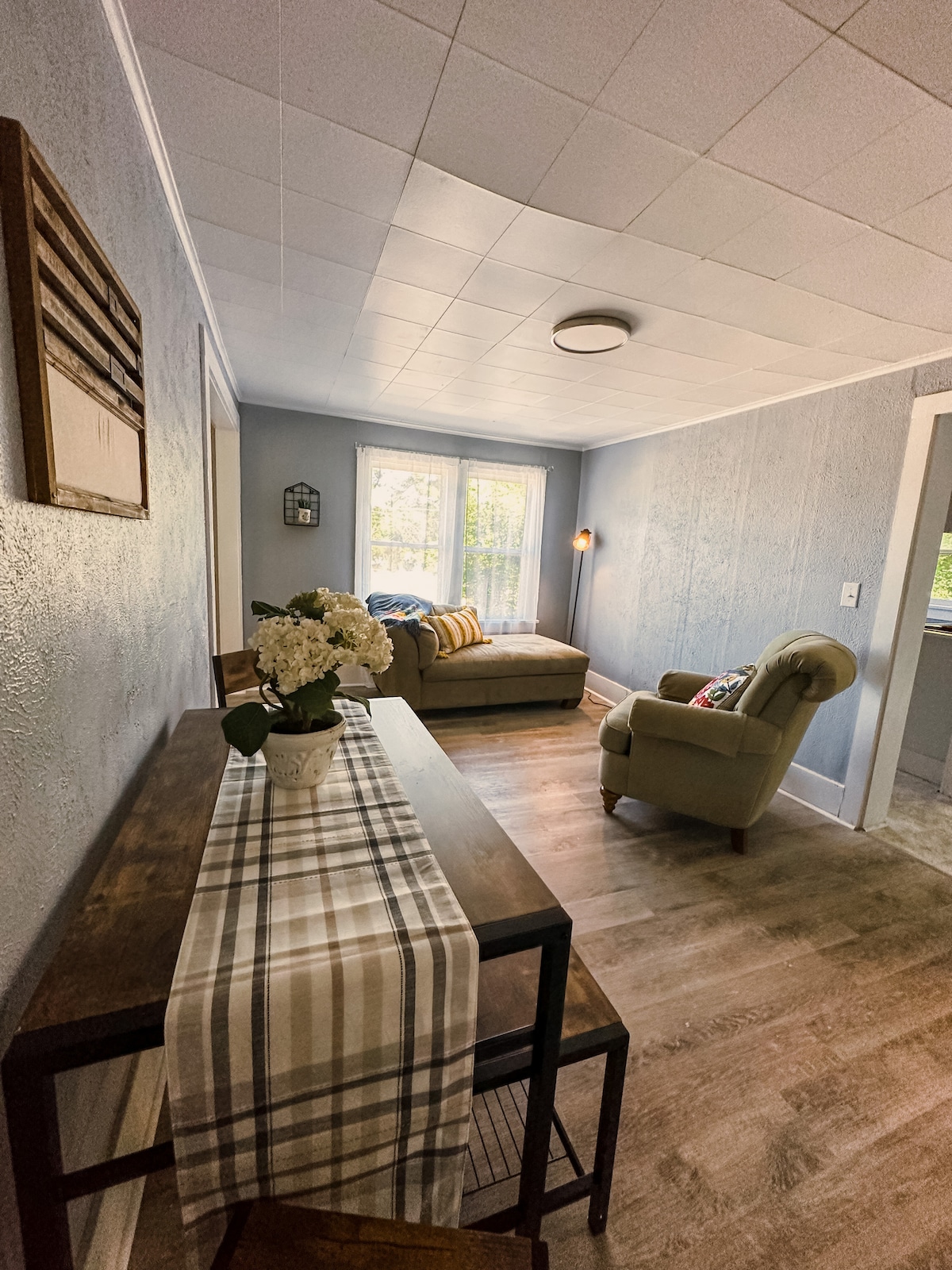 一間設備齊全的公寓,位於我們原木屋(我們的主要住所)的地下室,位於美麗的剃頭湖上方5英畝的樹林中。 透過門廊和雙扇法式門進入公寓,提供隱私和空間,讓您放鬆身心,享受美麗的戶外景觀。 大型出口窗戶讓自然陽光照進廚房/飯廳/客廳牆壁對面的臥室。 高速網路和YouTubeTV提供娛樂選擇。
