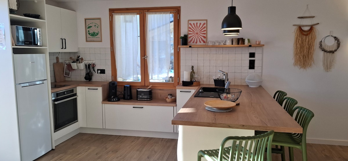 位於一樓的 15 平方公尺小型單間公寓,空間雖然狹小,但設備齊全,適合情侶入住,配備咖啡機、烤麵包機、微波爐、水壺、小型烤箱、玻璃陶瓷爐台、冰箱,以及配備毛巾乾燥機和吹風機的浴室(淋浴間、馬桶、石製洗手台)。5 平方公尺的小型室外空間,配備桌椅、Wi-Fi 和滑雪用品儲物櫃。 提供床單和毛巾。 距安道爾45分鐘,距西班牙普奇塞達25分鐘。