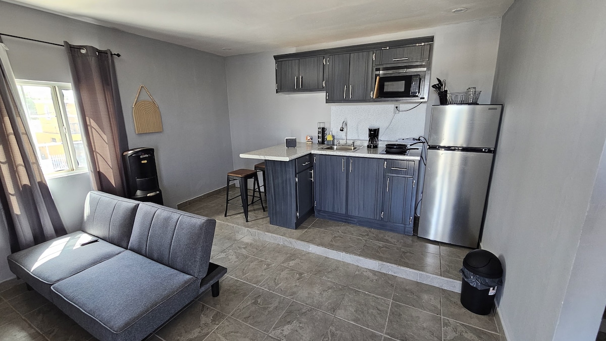 透過相片中發布的二維碼,前往我們的虛擬導覽。 -帶電動門的私人停車場 -帶安全鑰匙的門 -完整的廚房和酒吧、冰箱、爐竈、咖啡機、微波爐、全套碗碟 - 1間臥室,配有衣櫃、書桌、標準雙人牀和毯子 - 1間全功能衛浴、洗髮精、香皁、毛巾 - 1張沙發牀和智慧電視、Netflix。 -距離獨立大道1個街區,距離豪華區域5分鐘,距離Justo Sierra Avenue 10分鐘