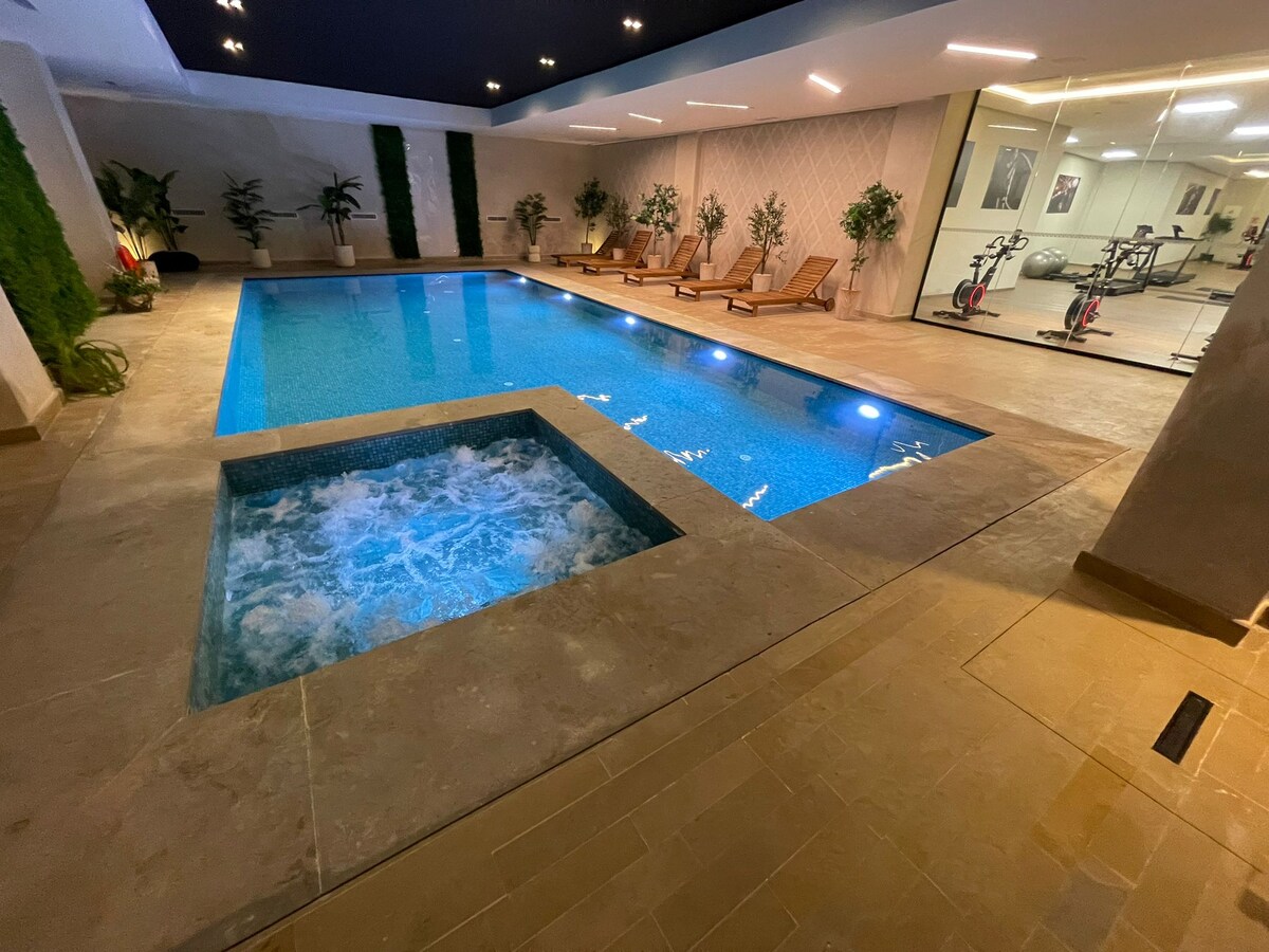 入住我們位於馬拉喀什市中心的 2 臥 2 衛公寓。享受高端 Simmons 床上用品、高速 WiFi(光纖)和現代裝飾,並帶有民族風情。設備齊全的廚房、優雅的浴缸和意大利淋浴間。距離Jemaa el-Fna廣場、Plazza和Carré Eden僅幾步之遙。 注意:未婚的摩洛哥夫婦不允許入住。