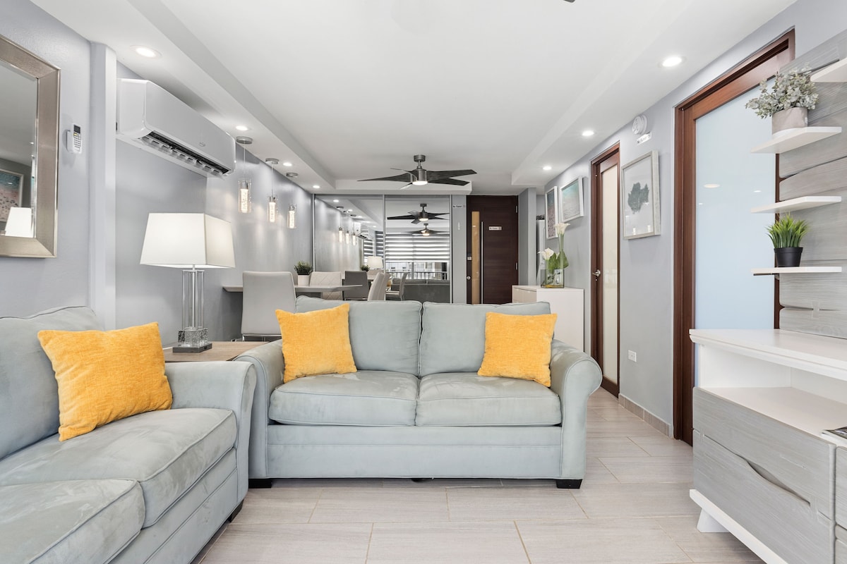 入住這間位處中心地段的房源,享受這裡的放鬆和樂趣。全面翻新和設備齊全的公寓,景觀迷人、游泳池、著名的海灘通道、遊樂場、運動器材、高速WiFi,以及娛樂、籃球場和網球場。步行即可抵達各種餐廳、賭場和藥局。此外,它靠近許多主要景點、商場和唯一的美國雨林「el Yunque」。包括免費停車位和 24 小時保全。