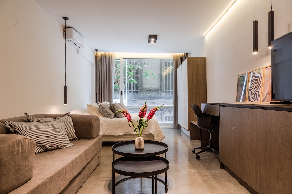 位於雷科萊塔 (Recoleta) 獨家區域的舒適單間公寓。IQ Callao 大樓設有健身房、泳池和保安。距離雷科萊塔村 (Village Recoleta) 幾公尺,附近有各式各樣的餐廳、交通工具和旅遊景點。工作室還配有 500mg 高速光纖 WiFi。