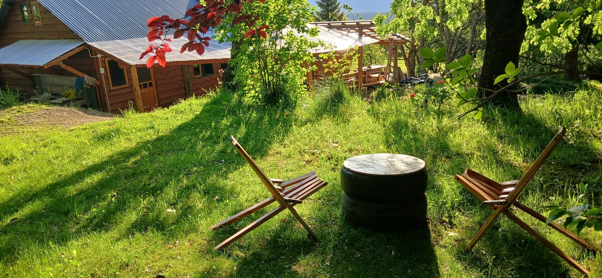 舒適的小木屋,周圍有綠地、小溪、美麗的山景和皮特里基特隆山。 我們有乒乓球和桌上足球等遊戲空間。