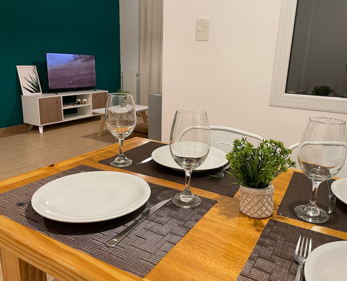 舒適的公寓,適合重視位置的小家庭、情侶或旅客。 ✔ 距離巴士站和商店幾步之遙。 ✔ Starlink 衛星網路,是保持聯絡的理想選擇。 ✔ 包括全套廚房和乾淨的床單。 ✔ 私人停車位。 探索El Calafate及其遊覽的👉絕佳基地。