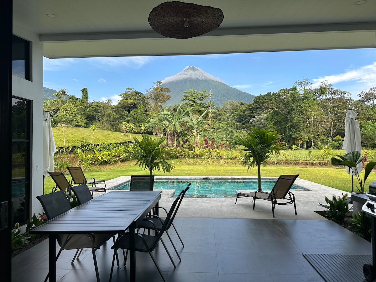 Direct Volcano View | Luxury Villa & Private Pool Wake up to unobstructed Arenal views from every room! This brand-new villa blends modern luxury with jungle serenity. Relax in your private pool, just 5 min from downtown La Fortuna. Breathtaking Views: Volcano visible from all rooms & terrace. Top Comfort: 2 BR with King beds & AC. 2 full baths. Luxe Living: Chef’s kitchen, fast WiFi & Concierge service. Perfect for couples or families seeking an elite base for Costa Rican adventures!