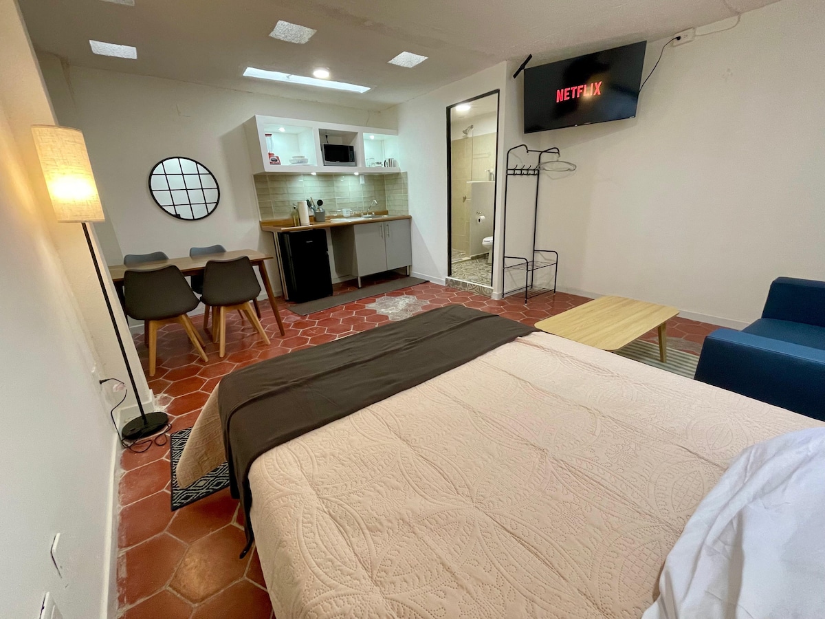 PREGÚNTAME POR NUESTRA OPCIÓN DE ESTACIONAMIENTO 🚗 🚗 🚗 Encantador departamento con una amplia habitación con dos camas matrimoniales y baño completo; sala de televisión, comedor y cocina impecables. Todo privado al fondo de las instalaciones de una linda cafetería en el corazón del centro de la ciudad. Ideal para vivir una experiencia única en un lugar seguro y turístico.