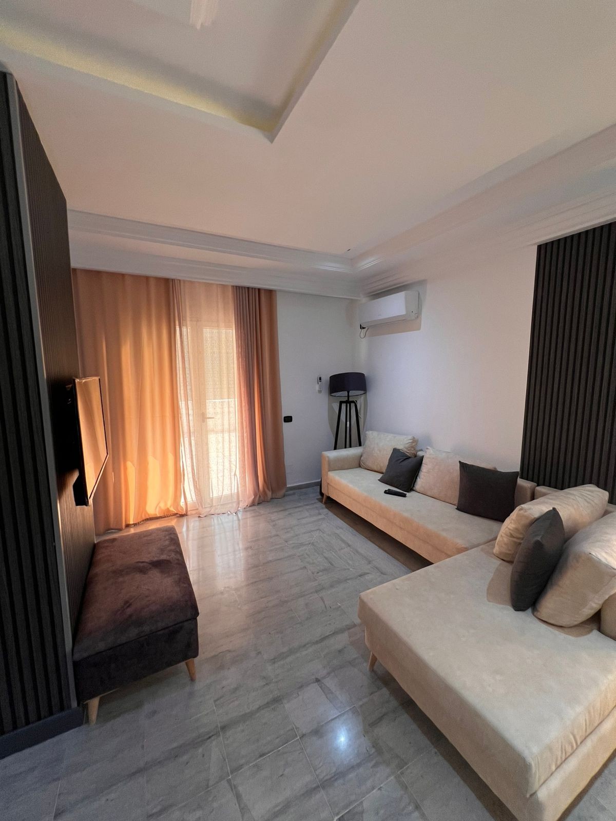 on aura le plaisir de vous accueillir dans notre appartement équipé d'un grand séjour , une chambre a coucher spacieuse cuisine bien équipé et dune salle de douche moderne on a le chauffage le climatiseur télévision une lave linge Wifi en fibre optique tout ca dans une résidence neuve bien sécurisé avec des cameras de surveillance et gardien et bien placée autour des commerces restaurent endroit vivant et au même moment calme quand on est chez soi !Hola !! bienvenue !!مرحبا !!welcome